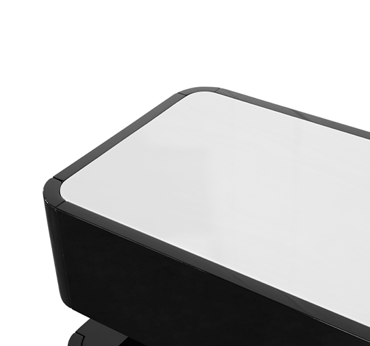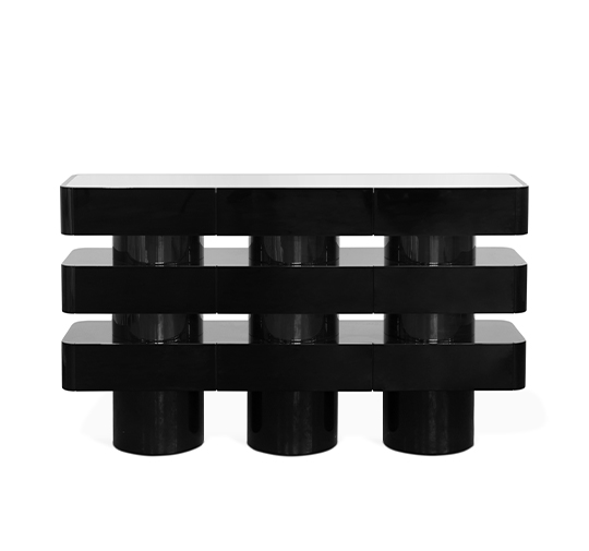 Shinto shrines are places of reverence and the abodes of the 'kami' - gods- where sacred objects are stored in the innermost chamber of the altar, not seen by anybody. SHINTO II Console was designed with a gloss black lacquered structure and ash wood veneer white tabletop, safekeeping everything you set on it. This entryway console table with drawers fits any modern classic set, adding a touch of style and refinement.
