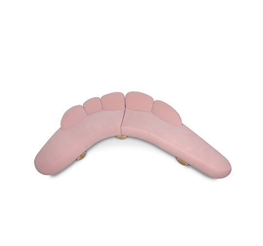 FITZROY Sofa is inspired in Mount Fitz Roy, a mountain in Patagonia, whose name is a tribute to Robert FitzRoy, the captain of the ship that transported Charles Darwin in his travel around the world. This curved sofa, with its back inspired in the outstanding mountain shape, is fully upholstered in cotton velvet and the base is in matte casted brass. FITZROY Modern Corner Sofa will add an organic element to any living room set.