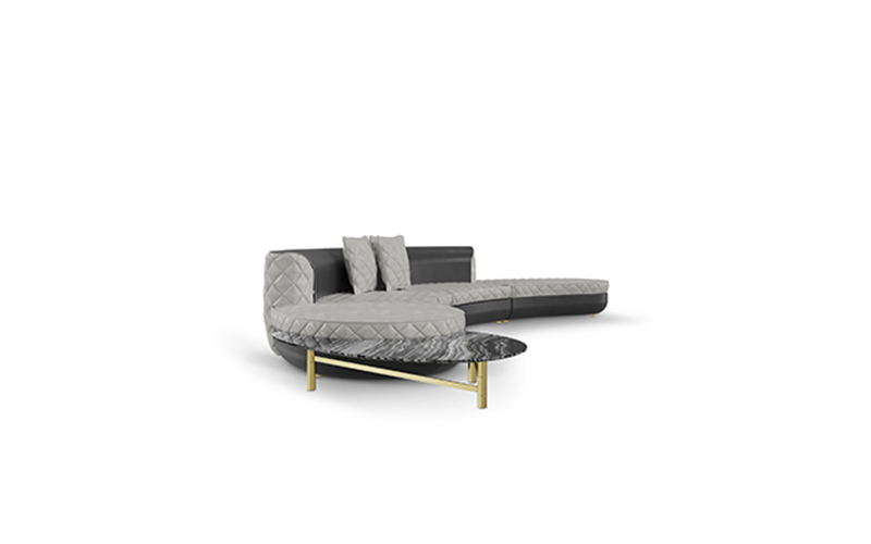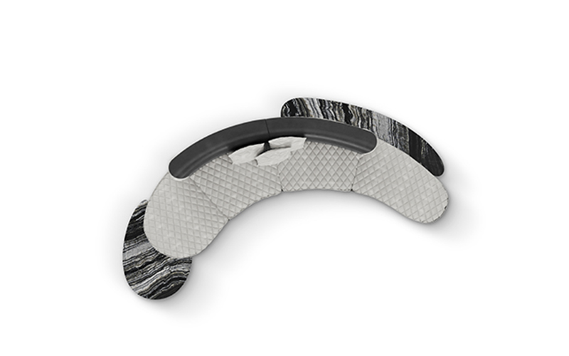Senzu is a brand-new upholstery piece designed to epitomize the ultimate expression of comfort, functionality, and luxury. This modern sofa made of leather highlights a rounder form with a neutral color scheme. In one of its extremities, Senzu presents an integrated side table completed with a Kenya black marble top and a stainless steel base that grants a new dimension to the concept of the living room sofa.