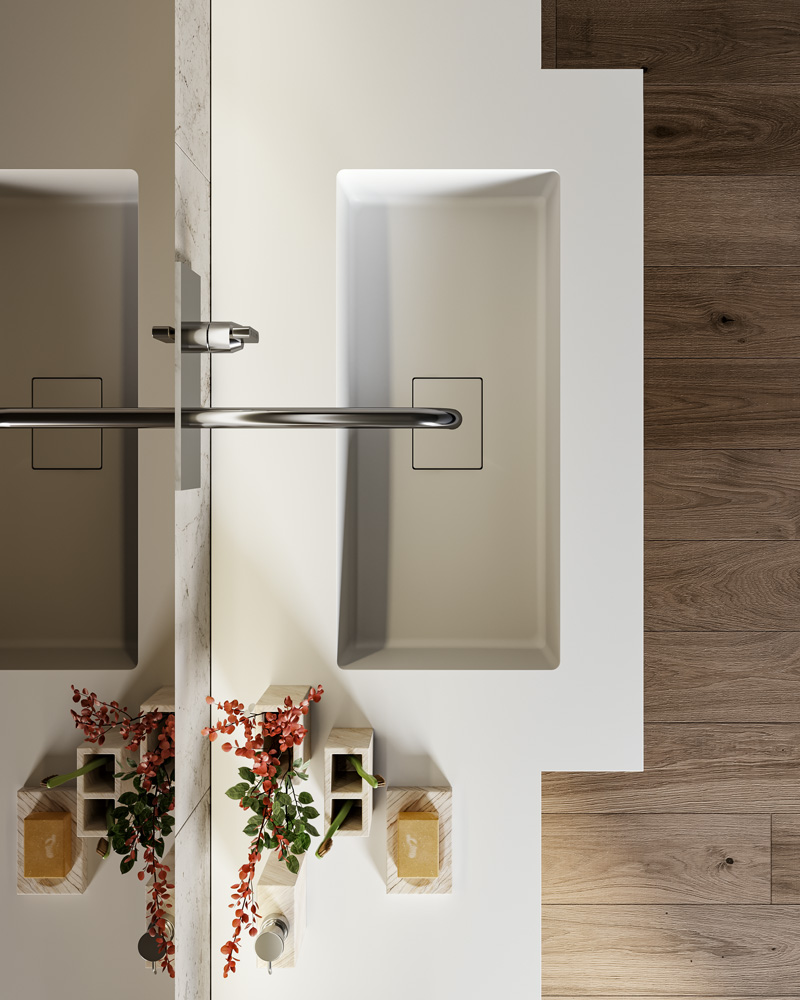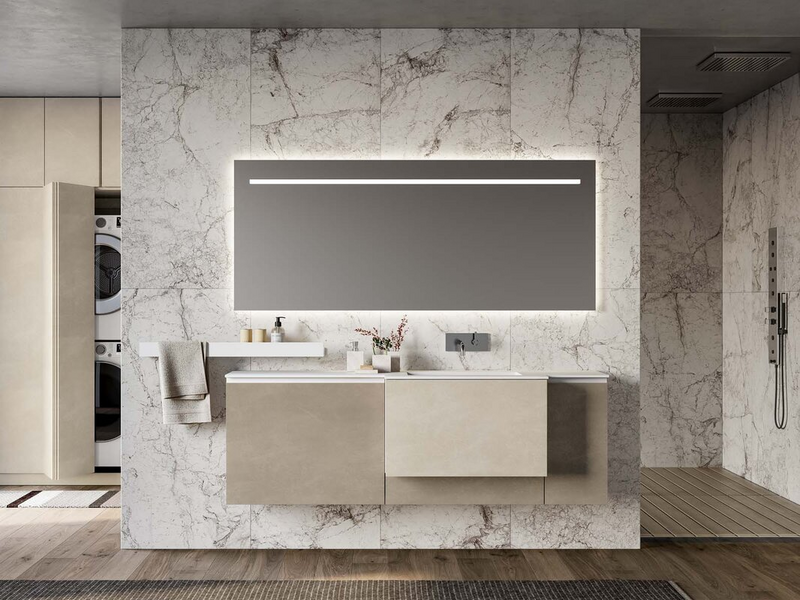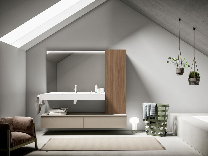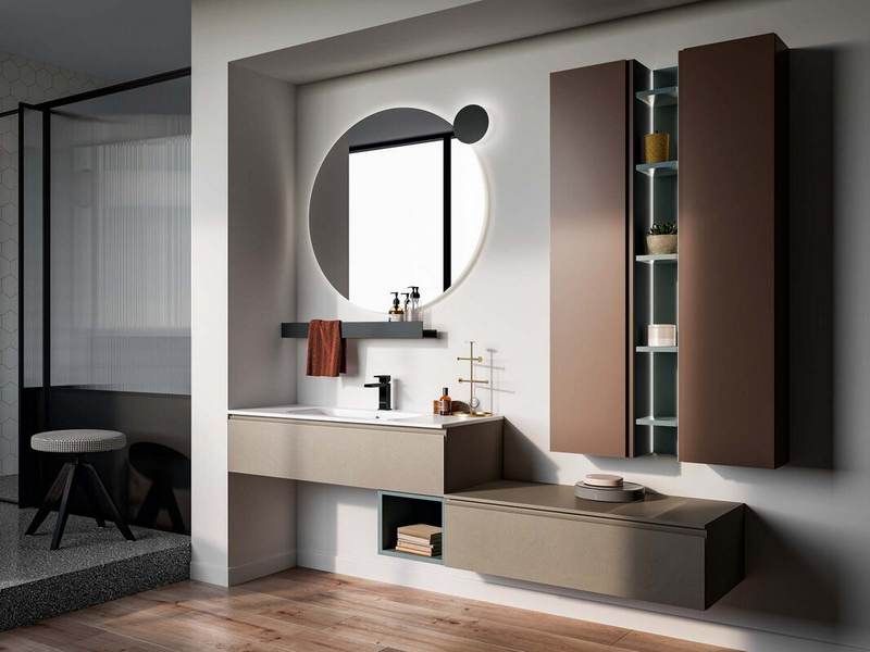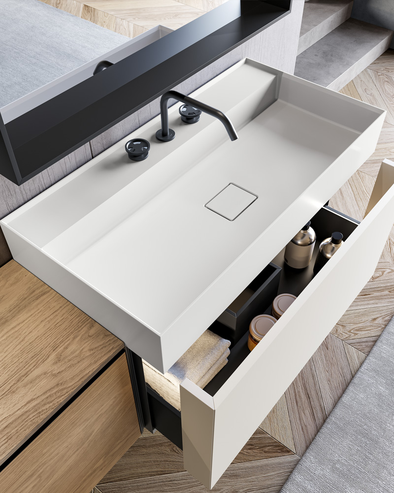 From a concept of a simple, modern bathroom furniture to a concept that combines aesthetics and functionality to raise modularity to its highest peaks and satisfy the most diverse design requirements. This is Lapis. Distinctive feature: the essentiality of a 45° door grip.