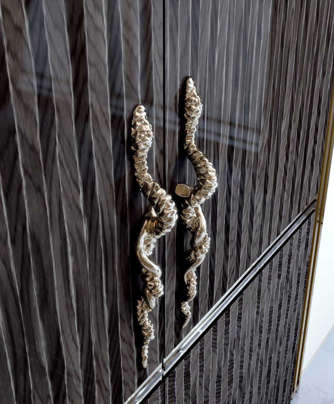 La preziosità degli arredi é accentuata dai riflessi dell’acciaio e dell’oro delle strutture, in perfetta sintonia con gli inserti dell’elegante “Rosa” del marchio Bizzotto Italia elegante dettaglio stilistico senza tempo.