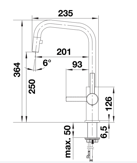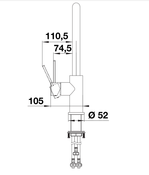 More freedom of movement with installations against a wall thanks to control lever with vertical neutral position