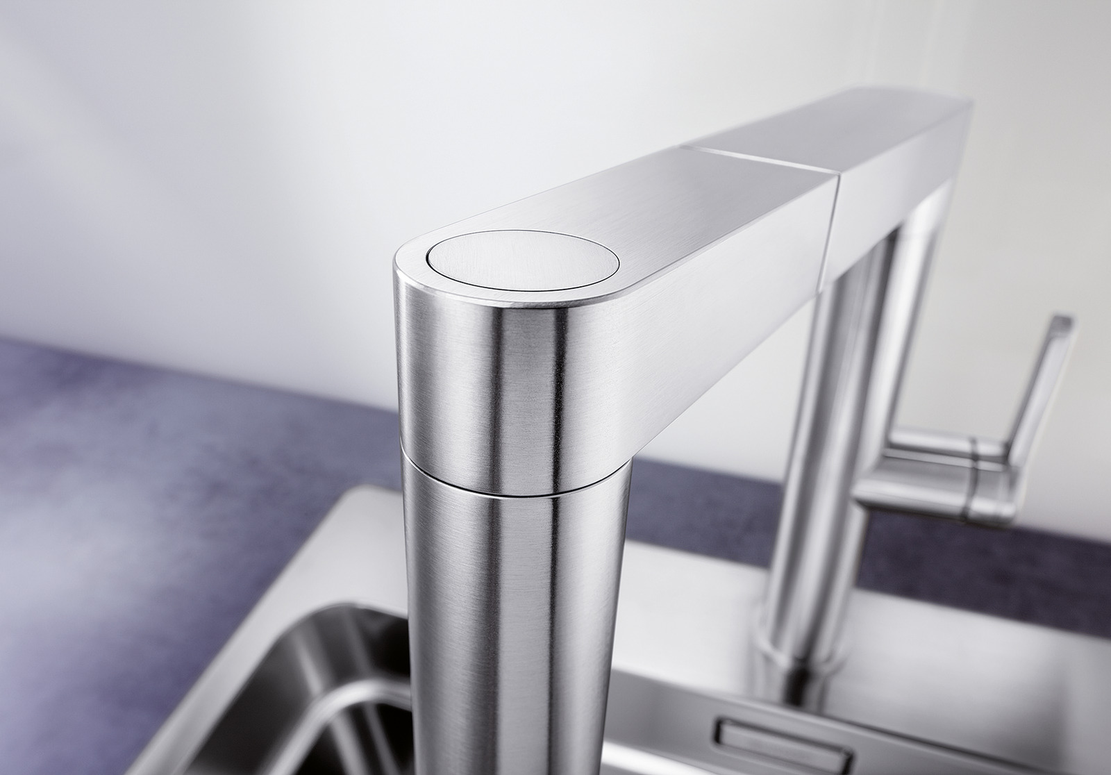 Designer mixer tap of striking elegance and material aesthetics