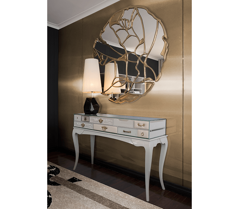 York is a tribute to two of our most popular designs, Trinity and Mondrian. It excels by being one of the most classic additions to Soho Collection, and fits perfectly a modern entrance hall, bringing an elegant touch to any decor. Created within the Boca do Lobo’s style, with a blend of classic and contemporary elements, its sinuous wood legs support a glass box which encases a collection of leather, hand carved mahogany, mirror, and lacquered drawers with distinct handcrafted brass pulls in a chrome finish. The cosmopolitan spirit of New York in your living room!