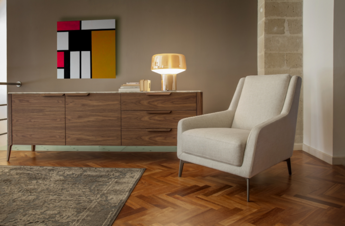 Puella, realizzabile in pelle o tessuto sfoderabile, si ispira alle linee delle classiche poltrone da lettura o da relax di cui mantiene il comfort grazie alla generosa altezza dello schienale, reinterpretate in veste contemporanea. Poggia su esili piedi in metallo o nella versione “swivel” su base girevole.