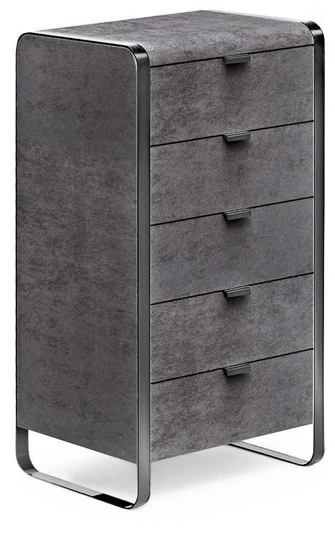 Cassettiera moderna Elvis in ferro con struttura rivestita.
