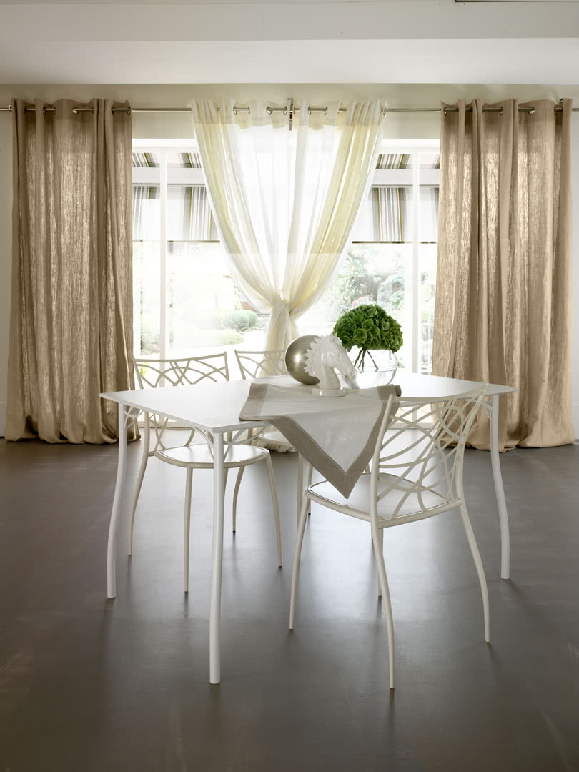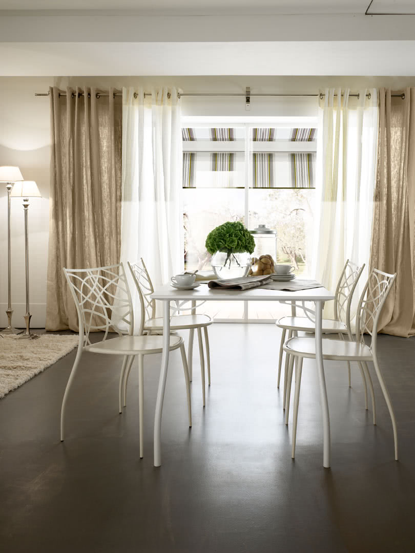 Tavolo da pranzo in ferro Jack con piano rettangolare e gambe in ferro.