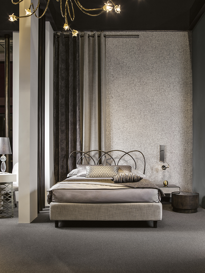 Letto matrimoniale moderno Helios imbottito in metallo.