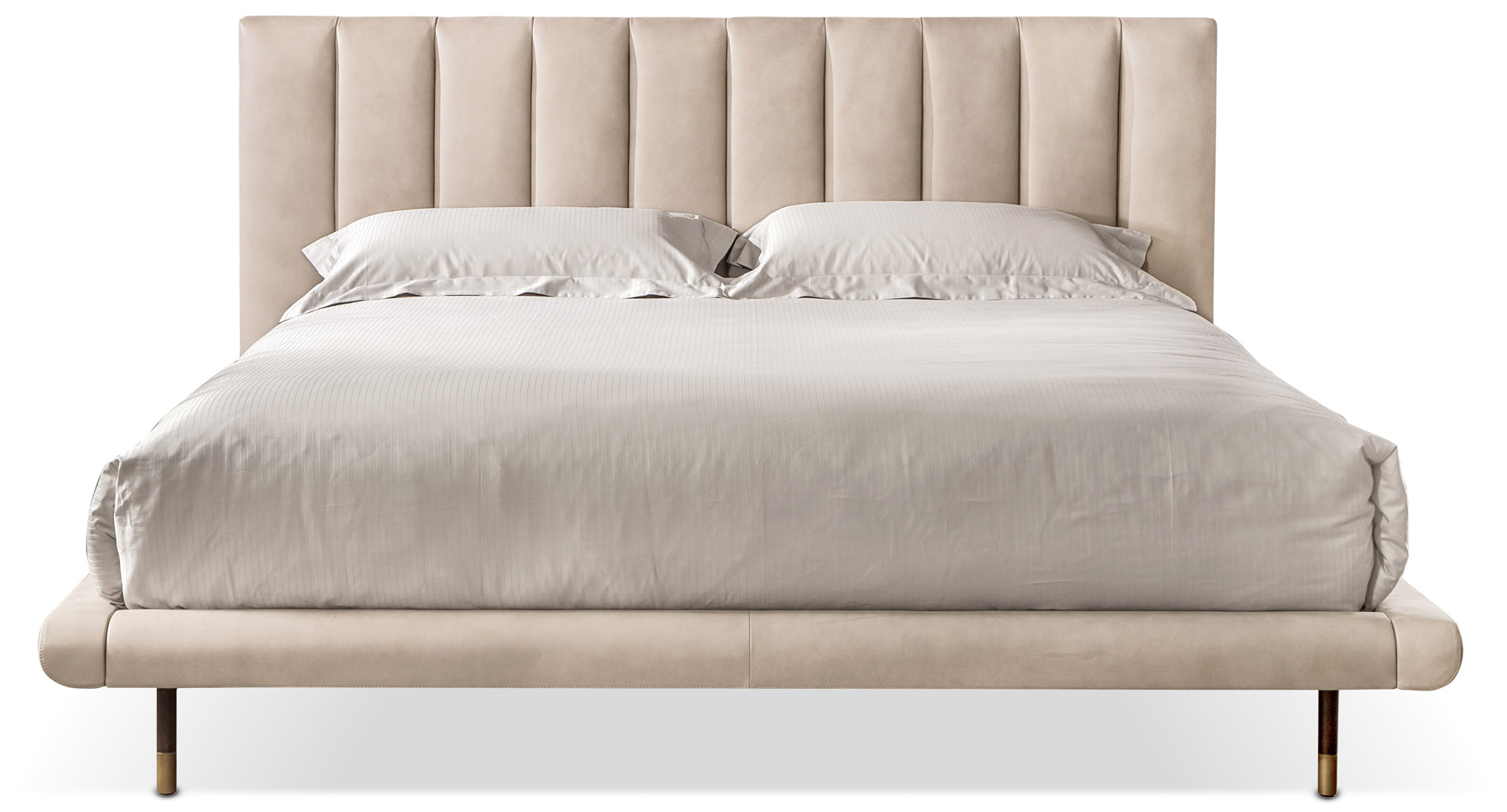 La struttura interna è in legno multistrato e massello di pioppo e faggio. Il rivestimento strutturale è in poliuretano espanso indeformabile e falda sintetica. Il rivestimento della testa e del giroletto è personalizzabile con tessuto pelle o ecopelle. Un letto dalle dimensioni versatili e imbottito con la puntura verticale che facilità la modularità e dona un effetto di morbidezza e solidità alla struttura.