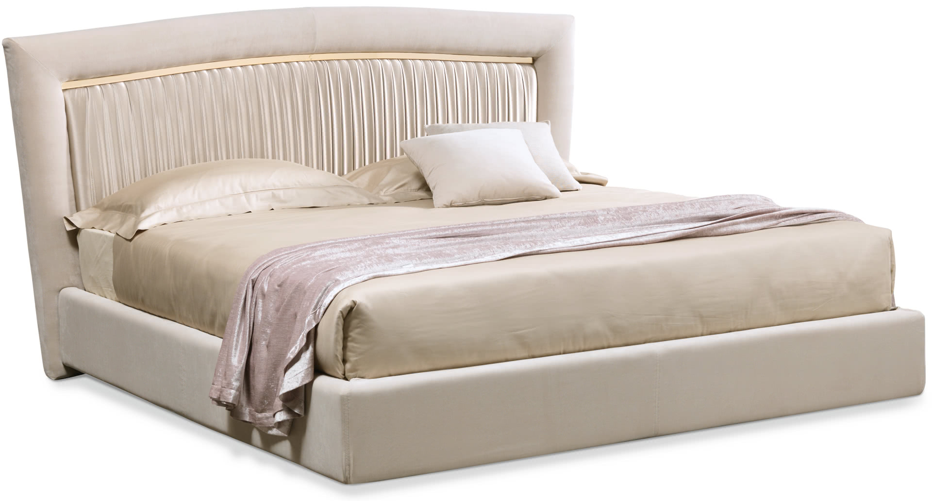 Letto matrimoniale classico Portofino Plissè imbottito con dettagli in oro.