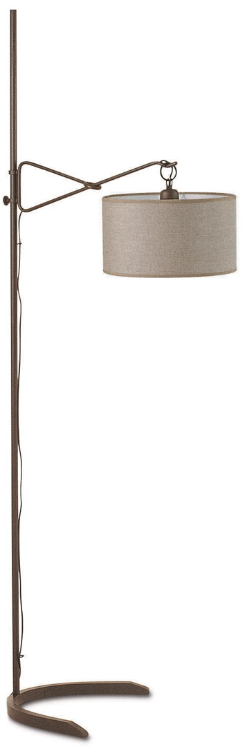 La struttura è in ferro pieno curvato con un paralume cilindrico in tessuto. La posizione del braccio in ferro può essere regolata per direzionare la luce. Una lampada da terra perfetta in sala o nello lo studio. Un design semplice dal sapore vintage.