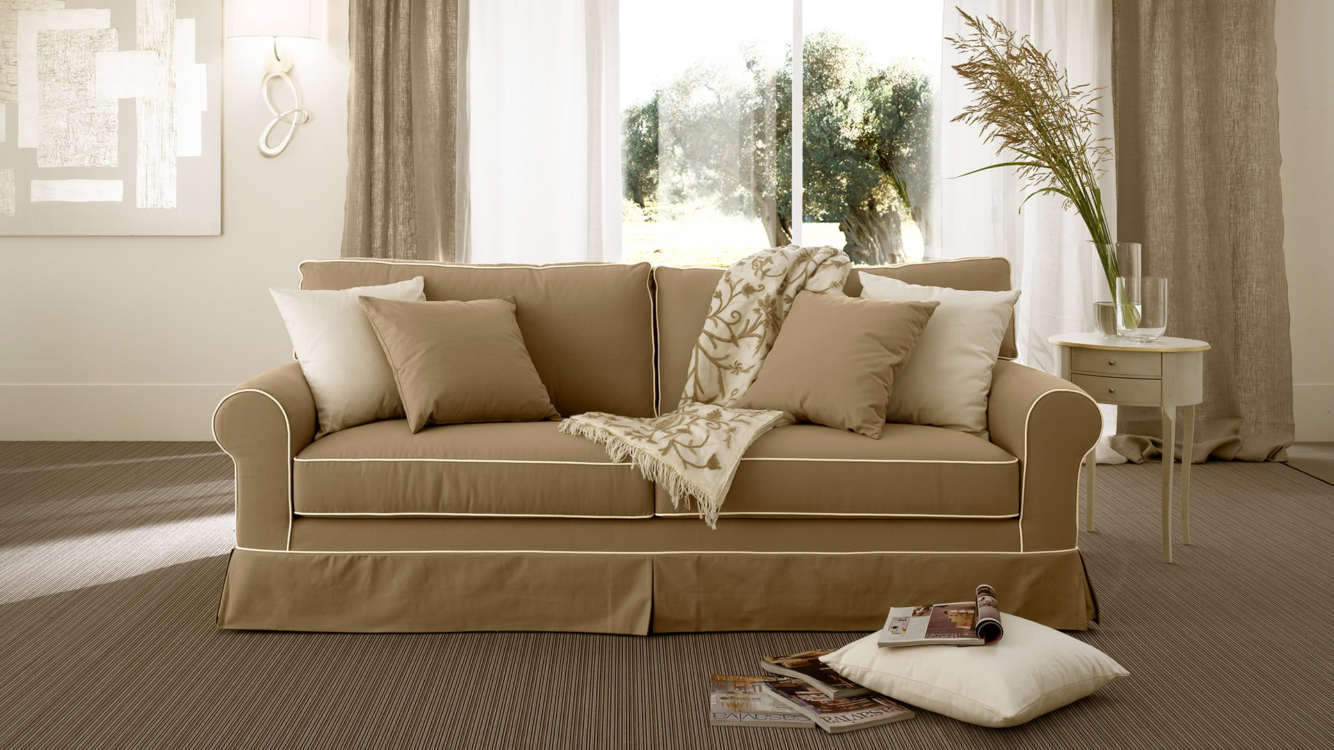Divano classico a 2 o 3 posti, Rivoli in lino o velluto.