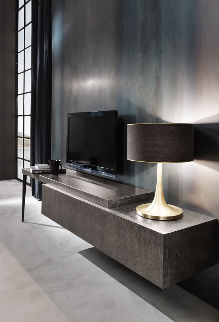 Mobile porta TV in legno City con pensile a muro e piano allungabile.