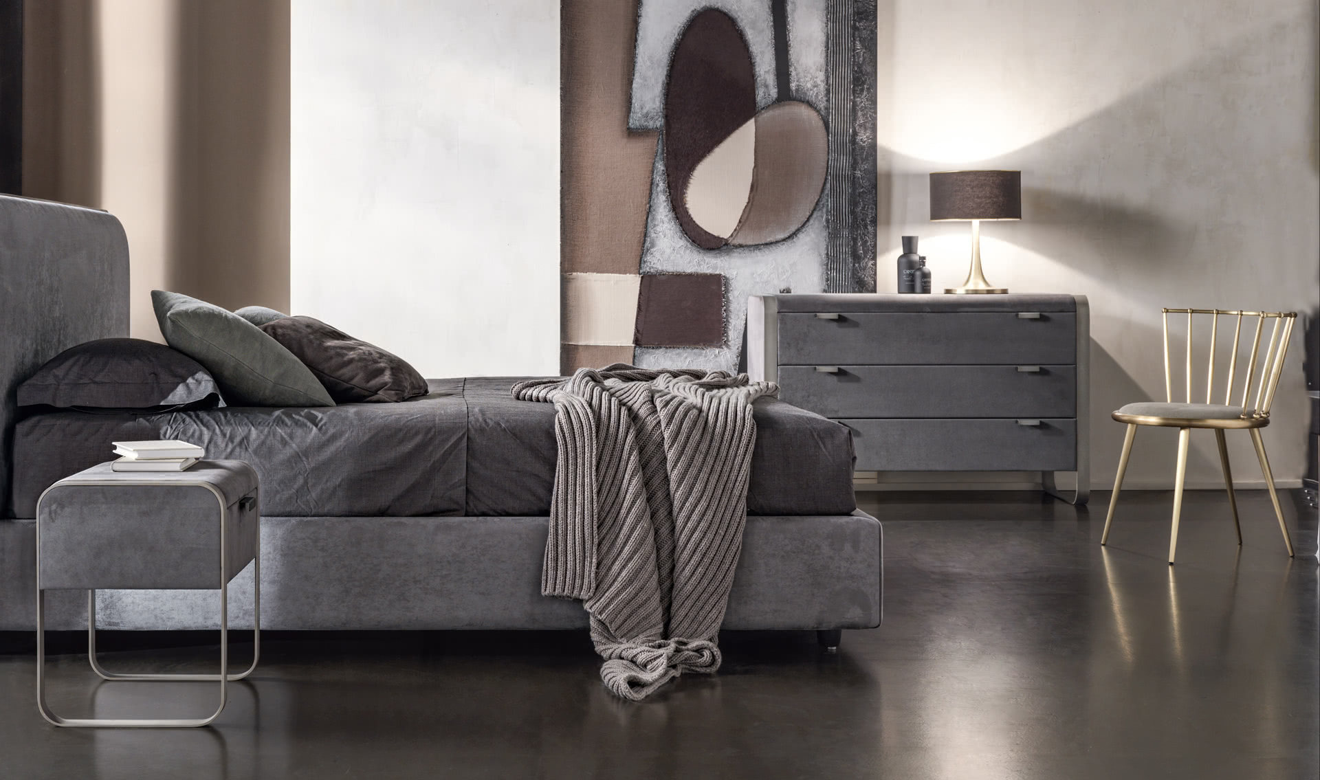 Sedia moderna imbottita Aurora bacchettata con struttura in metallo.