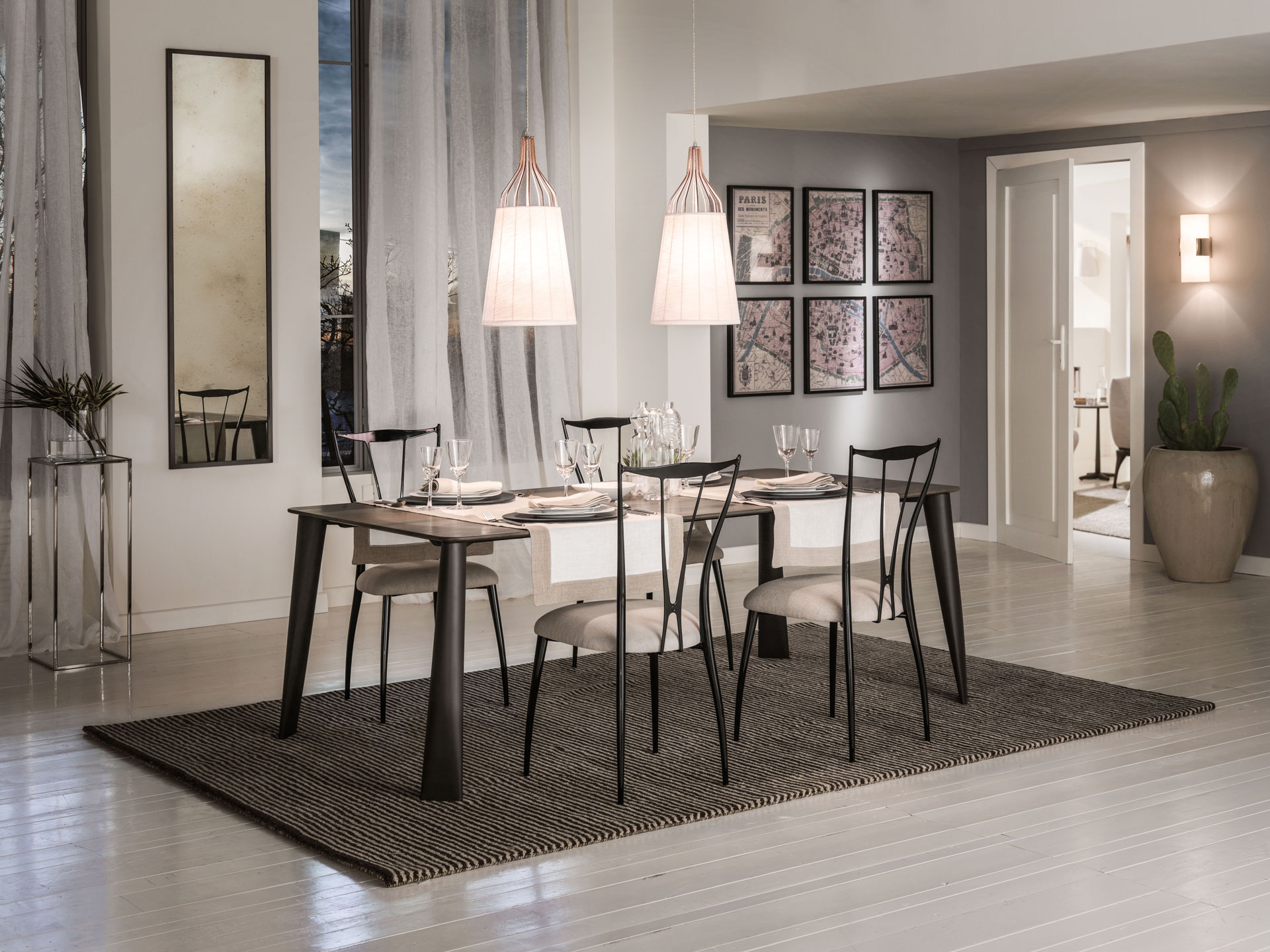 Nel dettaglio la struttura è in ferro conificato e sagomato a freddo, mentre lo schienale è tagliato a laser e curvato. La seduta in legno sagomato, è imbottito in gomma a due densità e rivestito sartorialmente in tessuto sfoderabile o in pelle/ecopelle non sfoderabile. Le sedie Vilma New si vestono d’oro per impreziosire i momenti di festa.