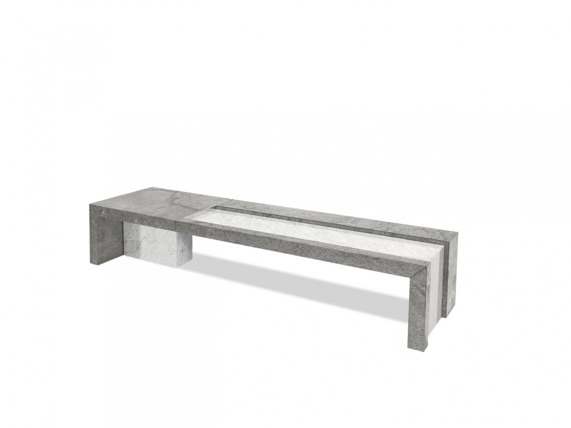 Deep formal rigor and exaltation of materiality are the elements that distinguish the side table Stone, whose name reveals the materials shaping it. Its neat lines and purity of volumes enhance the preciousness of the materials. The combination of Carrara marble in high gloss finish with ”sharp edges” quartzite creates a sort of harmonious contrast. Proportions and volumes reached with the alternation of two different materials make this side table particularly suitable for houses with a contemporary taste, easily matching with sofas of all shapes.