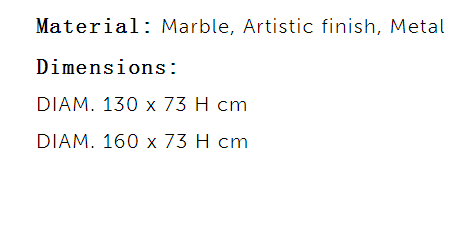 The peculiarity of the table Cheope lies in the eccentric decoration that covers the conical base, the designer’s artistic expression. A thin metal sheet is molded thus creating a surface with a strong three-dimensionality emphasized by a chromatic finish that enhances its texture. Available in different chromatic finishes to obtain the best match with the type of marble chosen. Particularly suitable for a small dining area, it has also a valid location in the entrance halls of villas or boutique hotels.