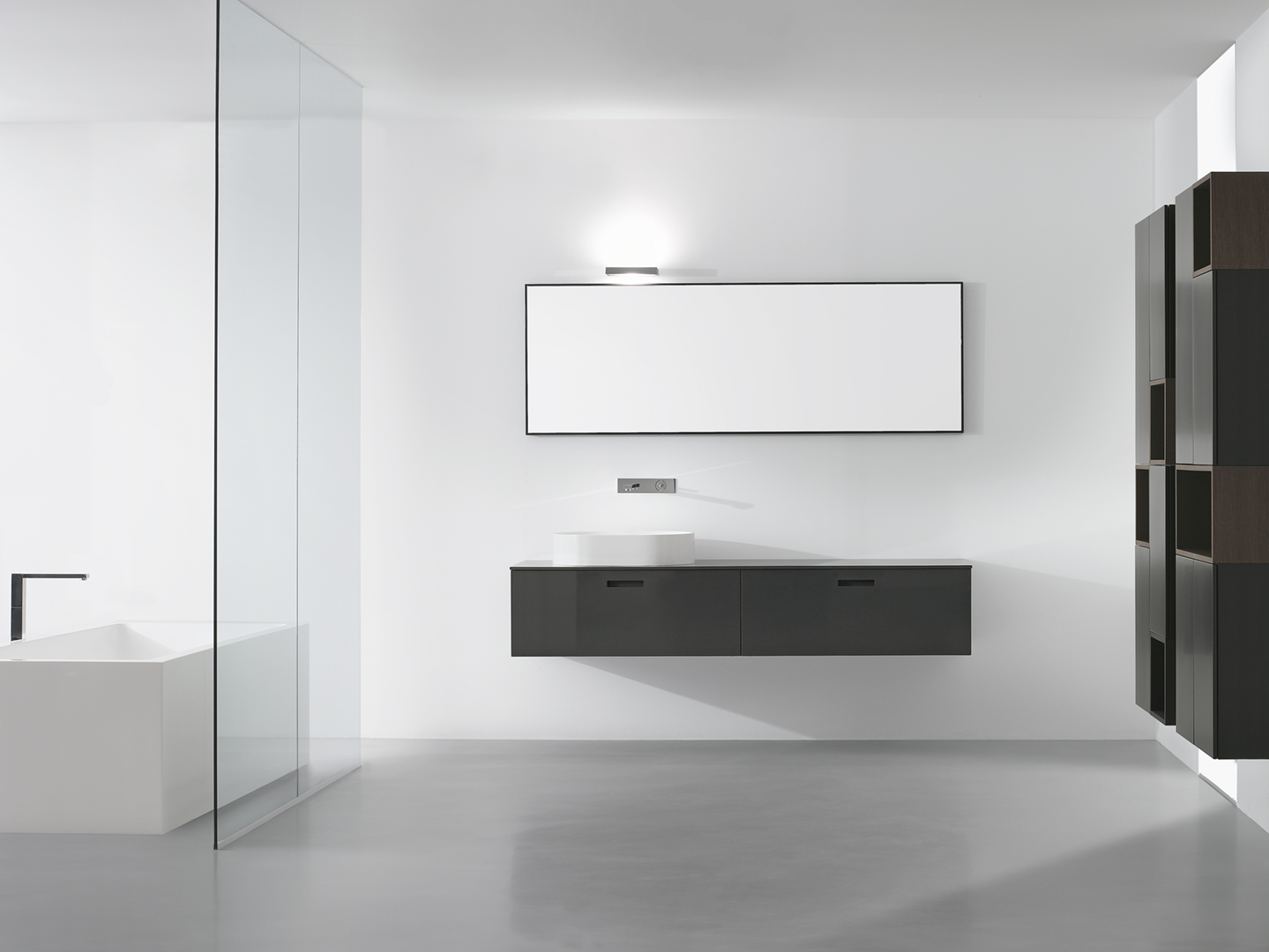 Semi built-in top washbasin in Monolith, with no overflow, for Monolith drain plug.