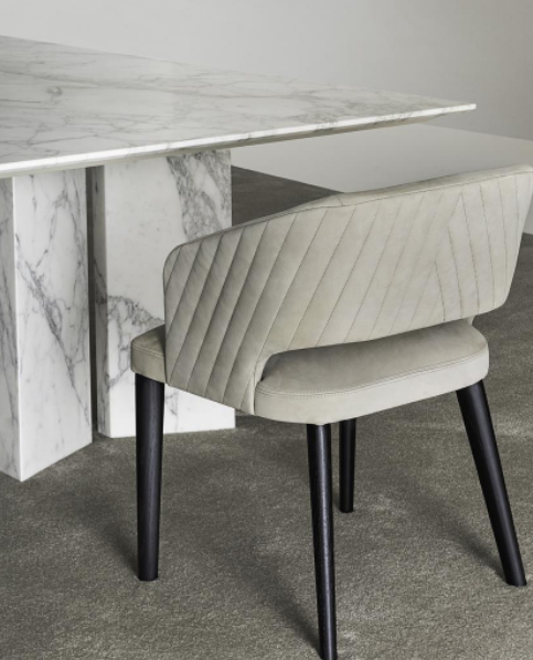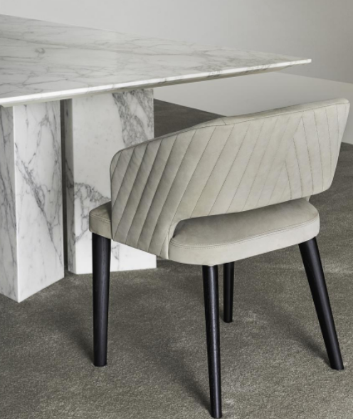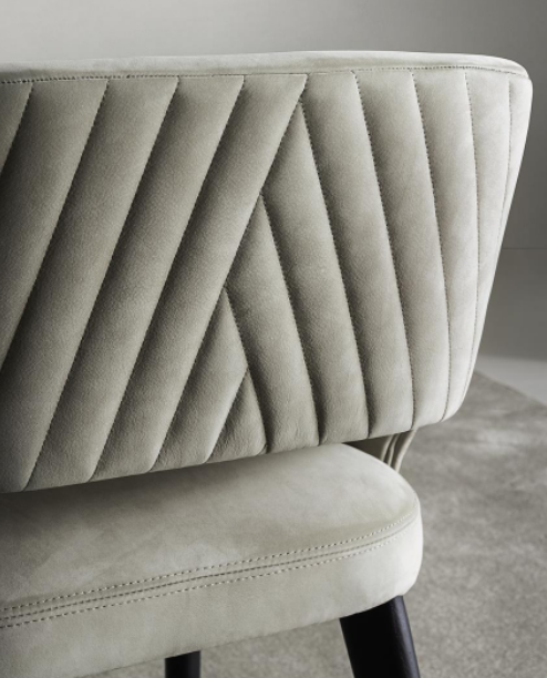 Upholstered chair with a contemporary design, characterized by the back with quilted tailoring, which gives it dynamism and modernity.