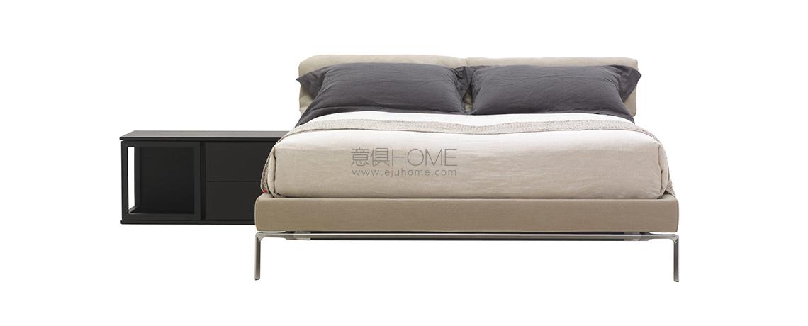 Sollevato da terra e caratterizzato da una linea sobria ed essenziale, il letto Moov rappresenta l’evoluzione naturale dei concetti di comfort e stile già presenti nell’omonimo divano disegnato da Piero Lissoni. La forma elegante è caratterizzata dal giroletto e dalla testiera imbottiti, con rivestimento tessile sfoderabile oppure fisso in pelle. La struttura portante è in multistrato di pioppo dotata di piedini in pressofusione di alluminio lucido. A corredo della testiera, sono previste cuscinature porta-guanciali, trattenute da un rollo cucito sulla parte posteriore, per conferire equilibrio e armonia. Il letto è completato dai comodini Note di Piero Lissoni.
