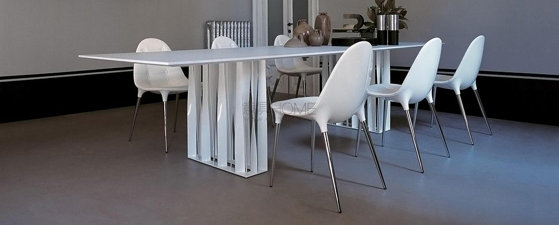 Due sedie emblematiche dell’approccio innovativo di Cassina, in grado di coniugare eleganza stilistica, tecnica costruttiva e praticità quotidiana in un prodotto maturo ed eclettico, adatto sia ad uno uso residenziale che contract. La serie Caprice e Passion si amplia per introdurre due nuove versioni interamente realizzate in alluminio, rispettivamente caratterizzate da una base girevole a forma di petalo e da una struttura a 4 razze con o senza ruote. La sagoma futuristica della scocca in nylon, derivata dai più avanzati esperimenti di fabbricazione, è rivestita con un’imbottitura liscia o capitonné, brevettata industrialmente e modellata sulla struttura come un abito sartoriale dalle linee fluide e leggere. Se Caprice si distingue per il design iconico e distintivo, Passion ne reinterpreta la costruzione e le finiture in una poltroncina dal profilo accogliente e confortevole.