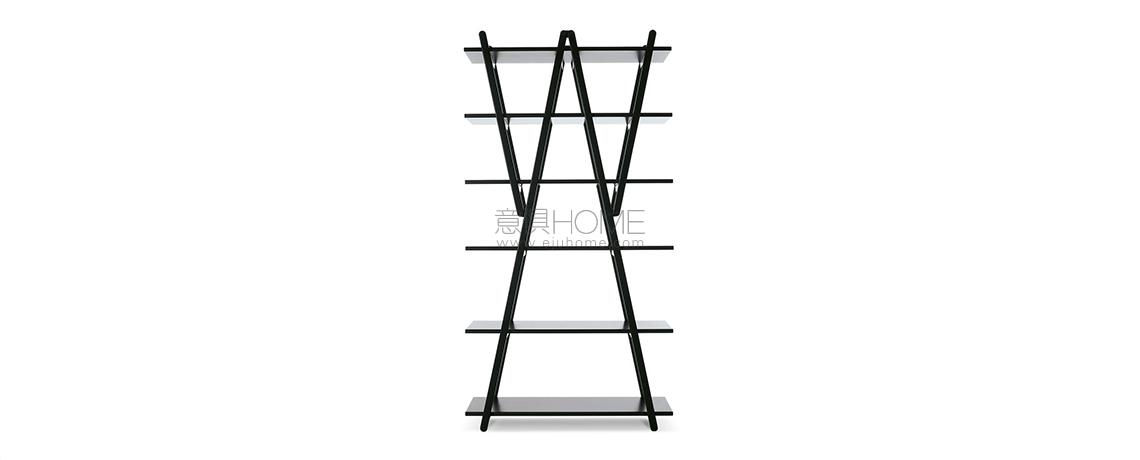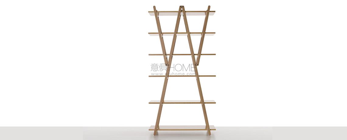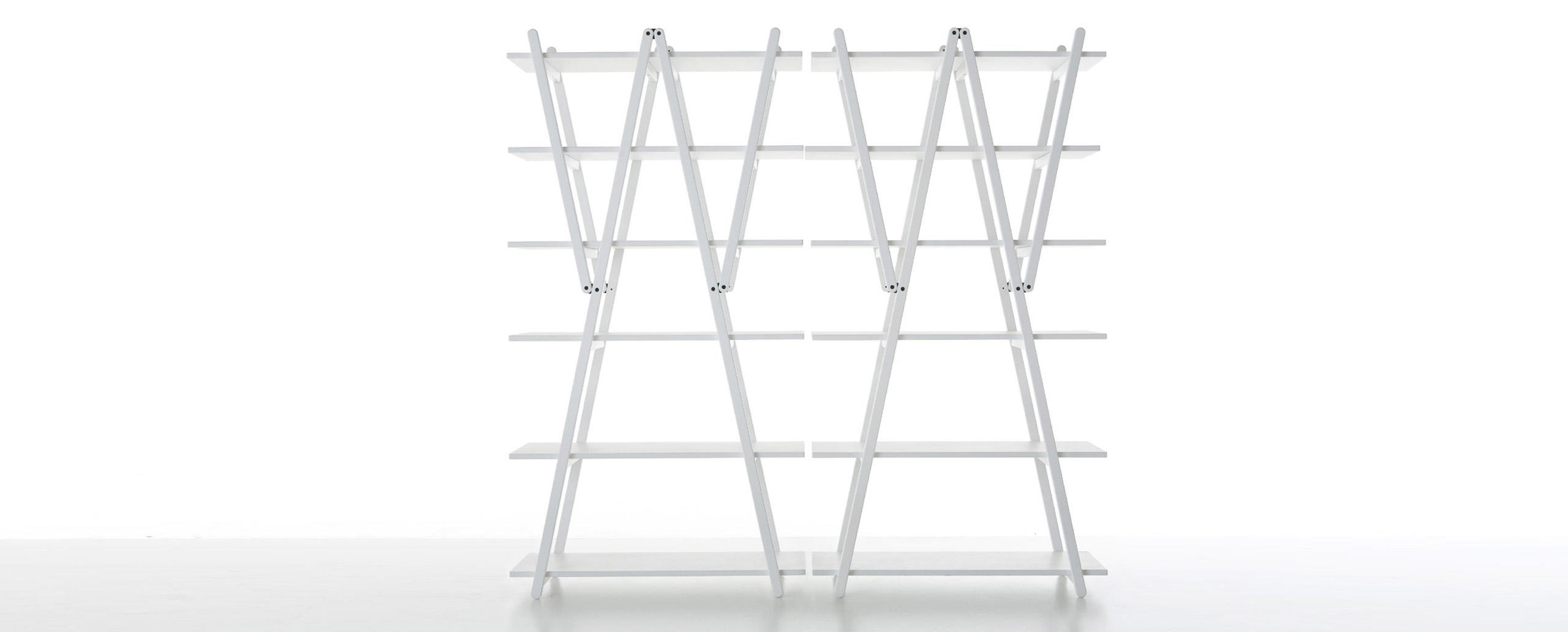 Una libreria dalle linee semplici ed essenziali, progettata da Vico Magistretti dopo una lunga analisi e interpretazione degli elementi costitutivi della classica libreria a fianchi e ripiani. Un’icona del design ma anche una vera e propria invenzione costruttiva, in cui le diagonali di controventatura diventano soggetti portanti ed elemento di sostegno per i ripiani consentendo l’eliminazione dei fianchi. La sua struttura pieghevole, utilizzabile anche come divisorio, conferisce un ruolo centrale alle cerniere e sorregge sei ripiani. L’estetica elegante e primaria, fuori dal tempo e di facile lettura, la rende un’icona indiscussa dal 1977, imitata a più riprese quale esempio di funzione semplificata attraverso il gioco delle forme.
