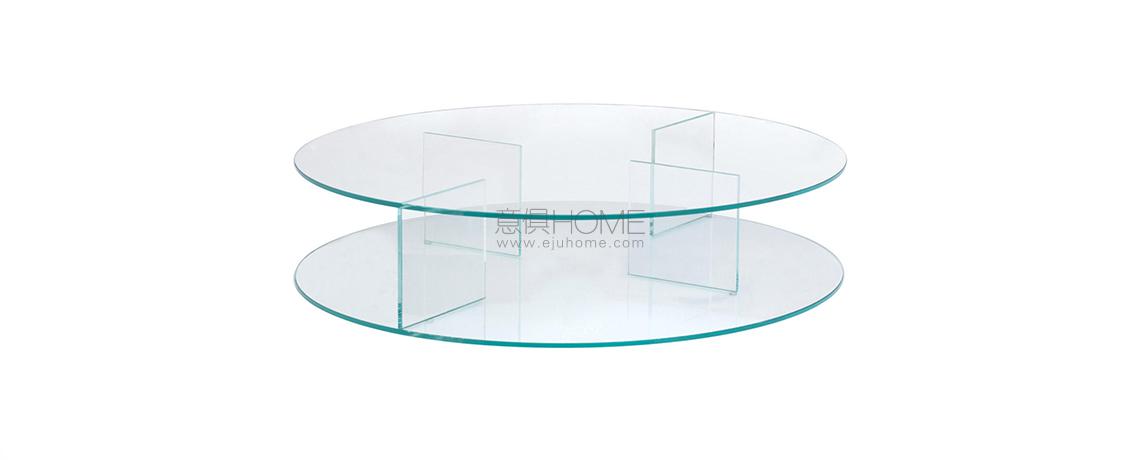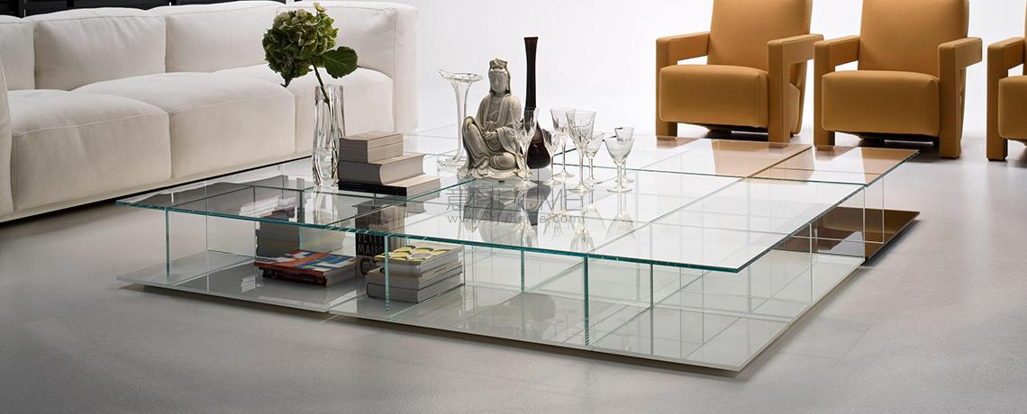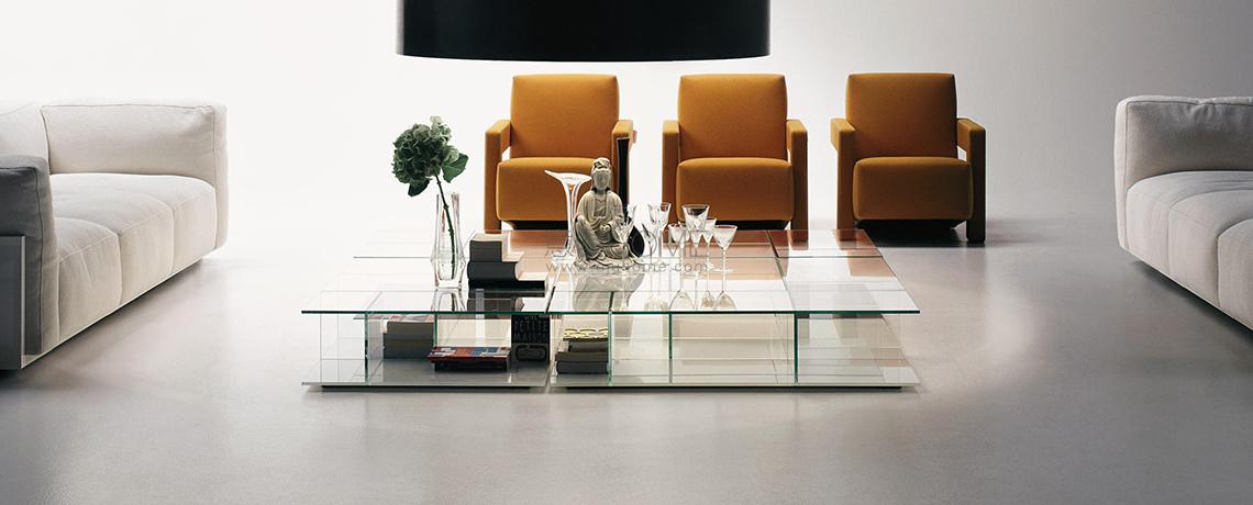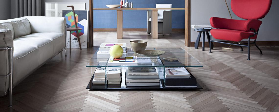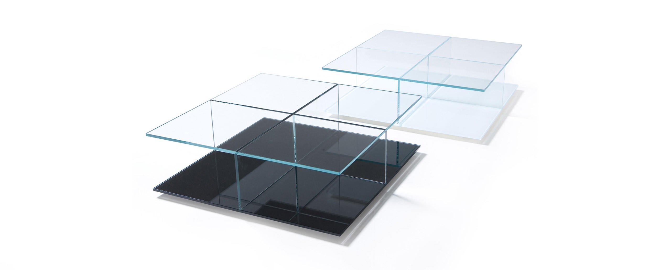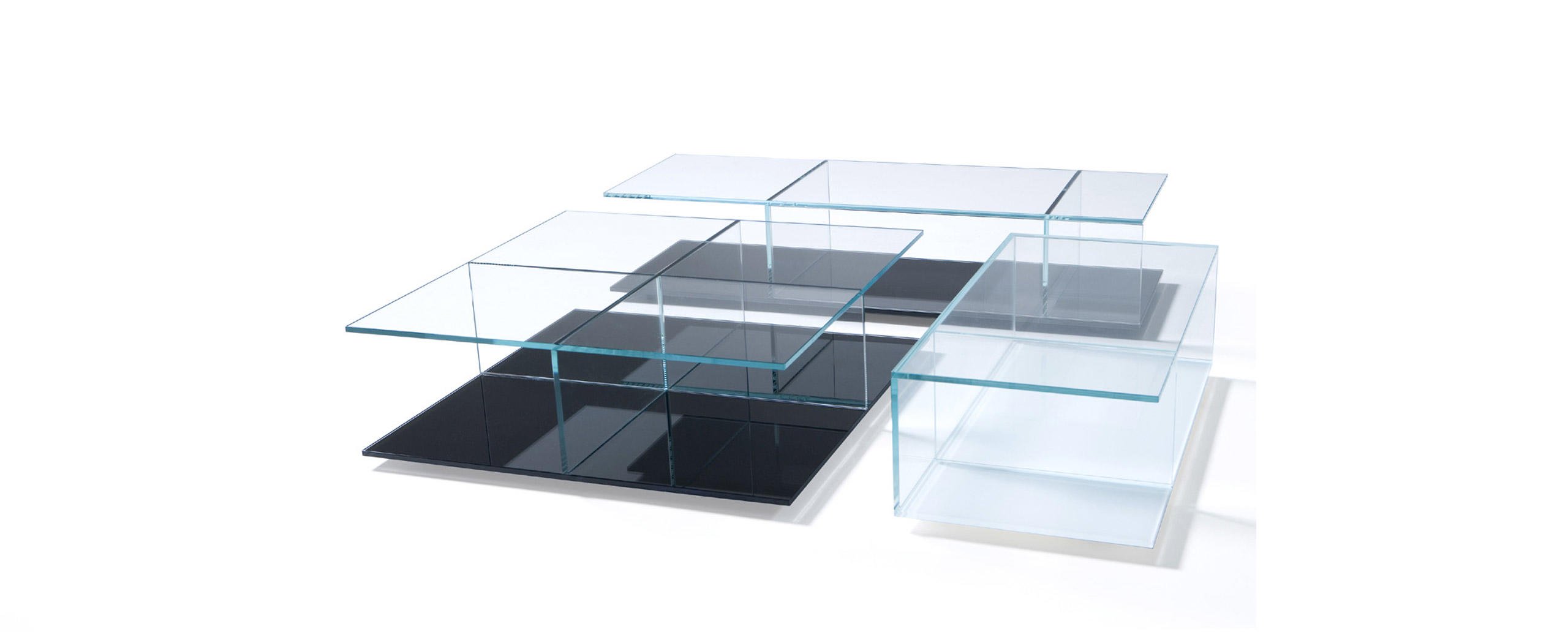 Tavolino etereo se osservato nelle sue trasparenze ma dall’immagine variabile se animato da libri, riviste e oggetti per cui diventa un perfetto e comodo rifugio.