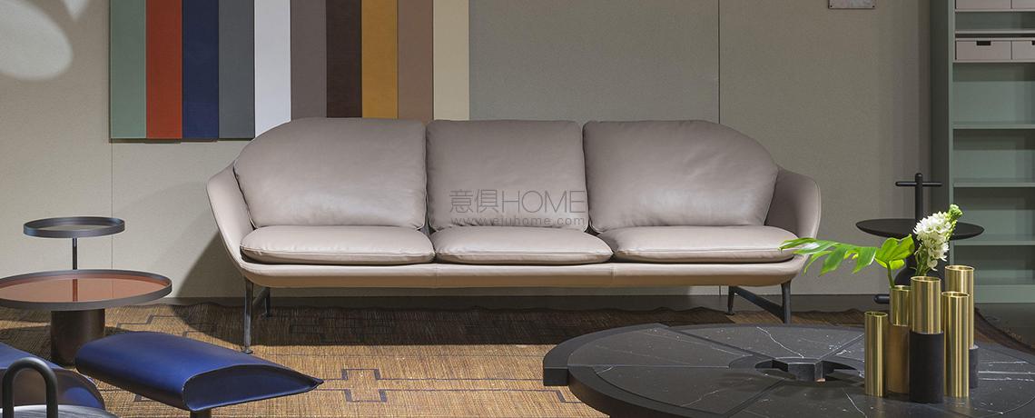 Un divano sospeso dalle linee minime e dagli spessori ridotti, che traducono la sensazione di comfort estremo attraverso un’estetica fluida e sinuosa. Vico rispecchia il desiderio innato di creare un nido privato, dove potersi rilassare senza dover rinunciare alla forma, alla struttura e alla comodità che contraddistinguono il design italiano. Il suo stile contemporaneo, essenziale e trasversale, sostituisce l’uso del legno con una base in fusione di alluminio in cui la memoria del passato incontra l’innovazione tecnologica. L’abilità sartoriale di Cassina si dimostra nel rivestimento rimbovibile in tessuto, espressione di una sfida costruttiva che invece di incollare il materiale al profilo sottile sceglie di esaltarlo con una lavorazione a tappezzeria. Hayon sviluppa parallelamente anche il concetto di forma, creando una sensazione morbida e organica apprezzabile da qualsiasi angolazione, mentre l’uso delle cinghie elastiche contribuisce ad accrescere l’alto livello di confort.