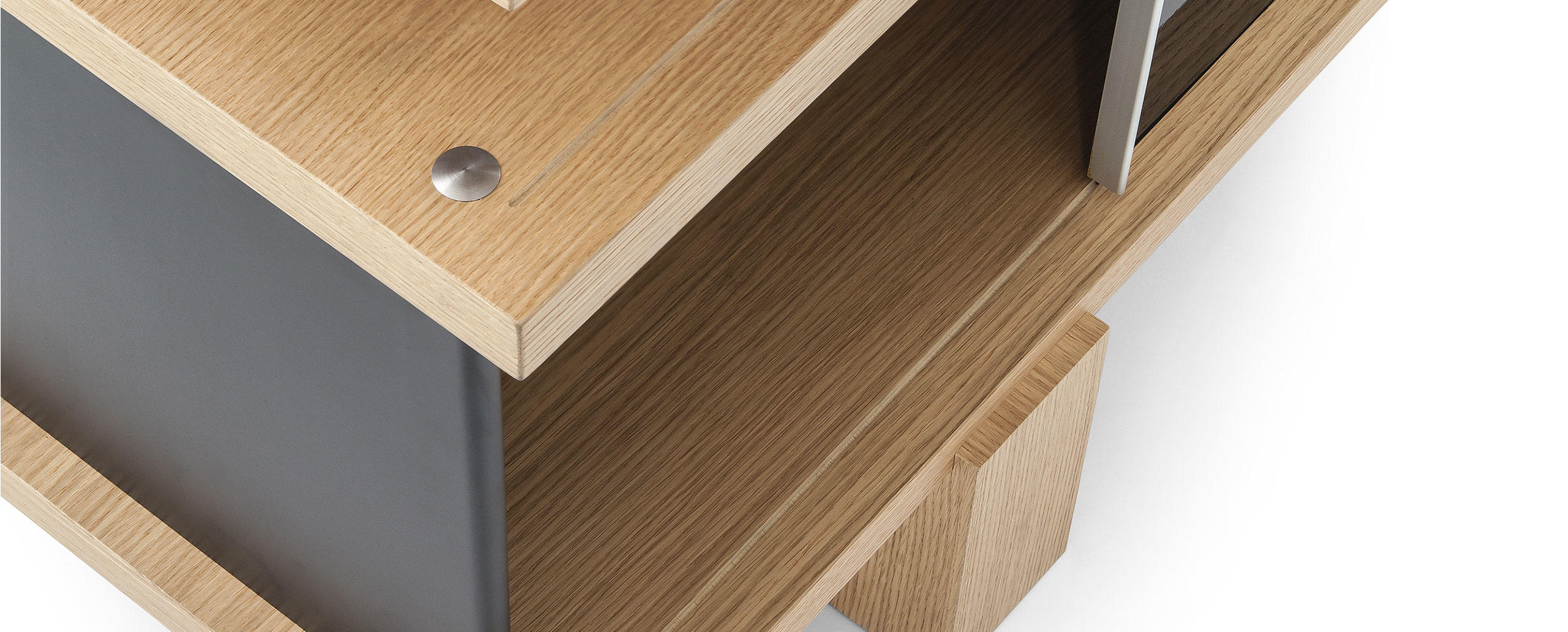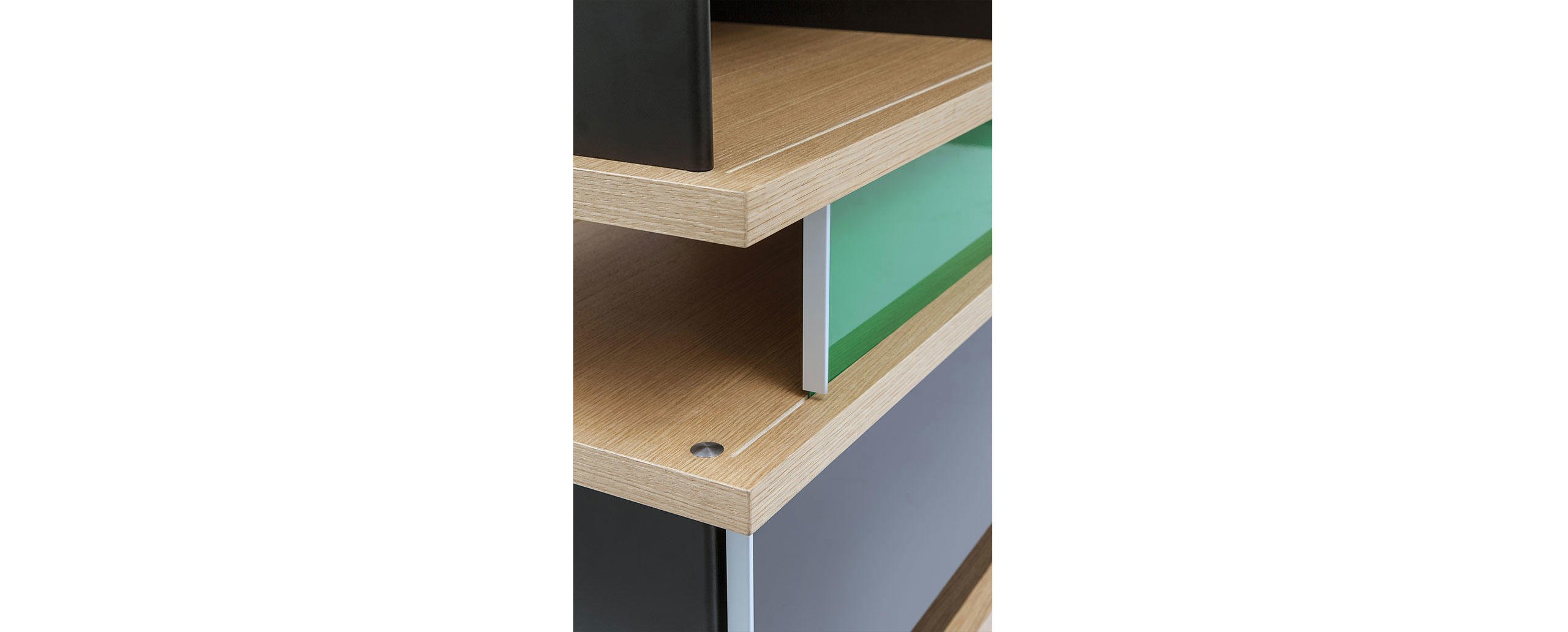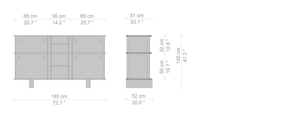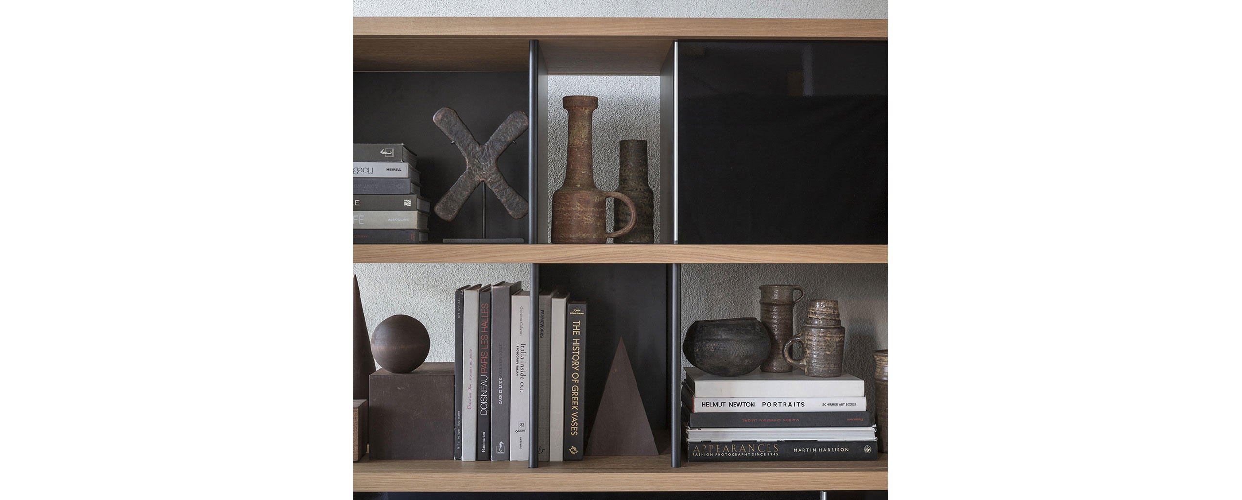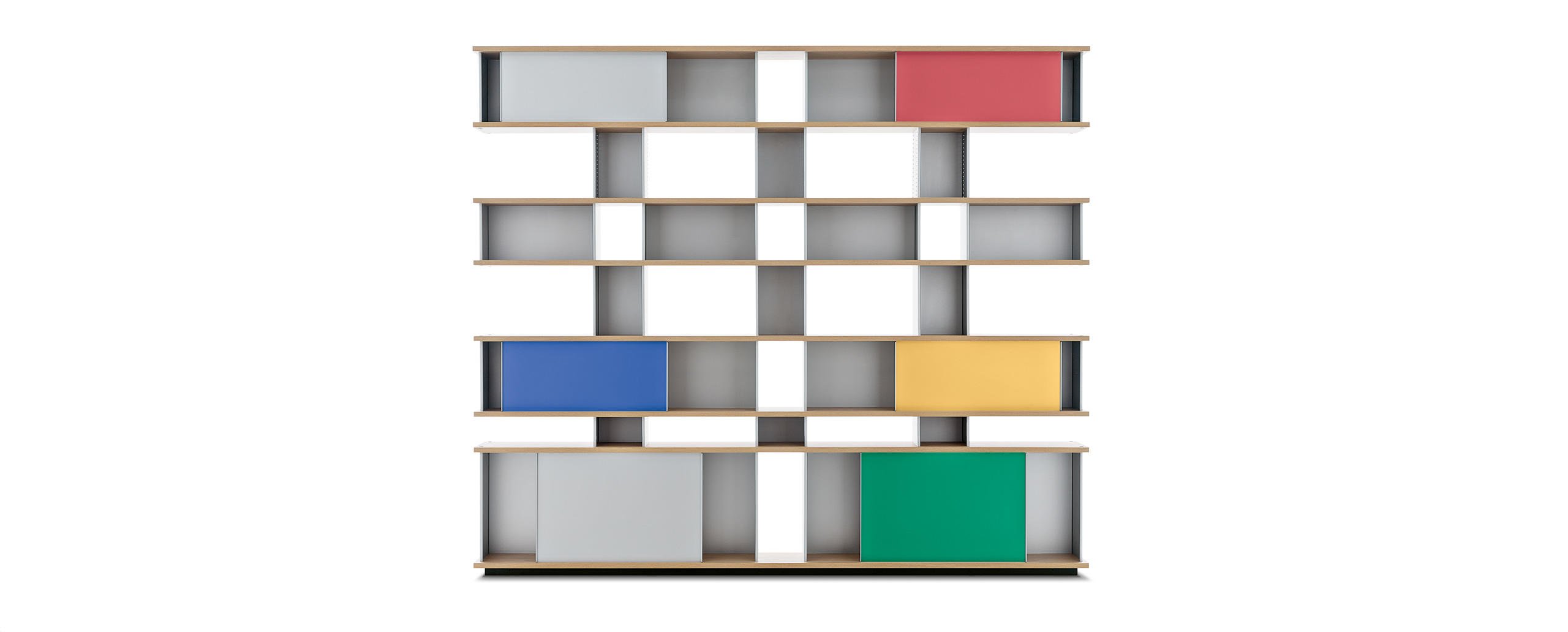 Autenticità e avanguardia caratterizzano il progetto ideato da Charlotte Perriand nel 1940, dopo aver notato della mensole disposte a forma di nuvola sui muri del Palazzo Imperiale di Kyoto. Da qui Perriand derivò il suo personale concetto di modularità libera, rigorosamente fondata sulla funzionalità, sull’estetica e sulla fruibilità dell’oggetto. Il design asimmetrico e il principio della combinabilità consentono usi molteplici in ambienti differenti, svelando varie tipologie che spaziano dalle credenze ai contenitori, dalle librerie a muro alle composizioni appese fino alle strutture autoportanti da collocare al centro della stanza. I moduli con ante a chiusura, disponibili in alluminio anodizzato o in una vasta scelta di colori, liberano l’immaginazione suggerendo un gioco di alternanze visive tra i pieni e i vuoti.