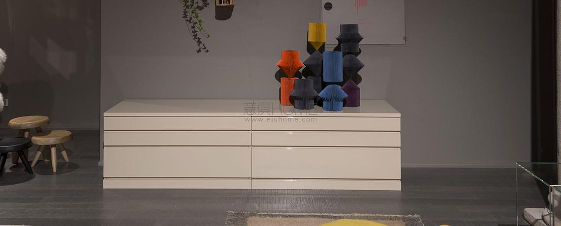 Una proposta di contenitori componibili, facilmente posizionabili sia nel living che nella zona notte. Gli elementi verniciati poliestere con finitura lucida, specchiante o opaca, sono realizzati secondo la tecnica di laccatura tradizionale utilizzata su diversi modelli della SimonCollezione. I contenitori flessibili e sovrapponibili sono disponibili a giorno, con cassetti e ante di chiusura. Per la stanza da letto è presente un comodino con maniglia ricavata sul bordo longitudinale del frontale cassetto, declinato in differenti combinazioni secondo il gusto e le esigenze.