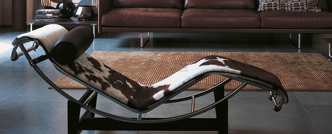 Disegnata nel 1928 e resa celebre dal 1965 da Cassina, LC4 è la chaise longue per antonomasia: la forma del relax, nata dalla volontà dei tre progettisti di mettere l’uomo al centro dell’attenzione, grazie alla corrispondenza fra formae funzione del riposo, in equilibrio perfetto fra purezza geometrica e corporeità.La stabilità della culla – per qualsiasi angolo di inclinazione – è assicurata dall’attrito con tubi di gomma che rivestono i traversi del piedistallo.