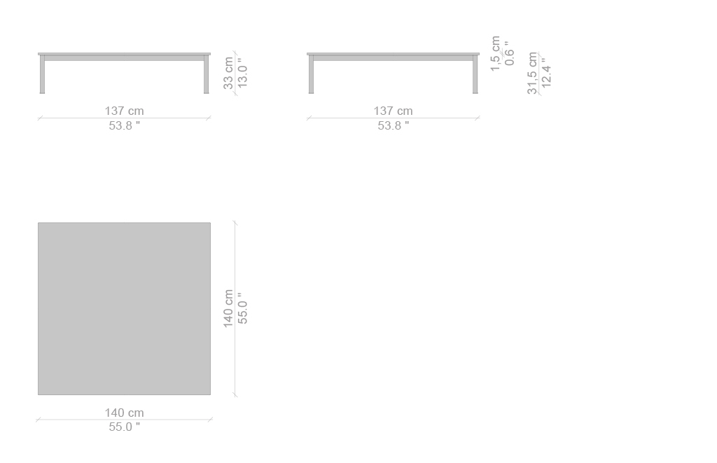 Il modello, che nelle misure originarie era presentato con funzione di scrittoio, fu rivisitato dalla Perriand nel 1984 e rieditato con Cassina l’anno successivo per offrire nuove varianti in linea con le necessità d’uso della modernità. Il design essenziale della struttura portante rivela la sua unicità nel trattamento cromato dei ritti tubolari in acciaio e nella laccatura colorata sui traversi laminati. La serie include i tavoli e i tavoli bassi di forma quadrata e rettangolare, con la verniciatura disponibile nei diversi colori della palette di Le Corbusier.