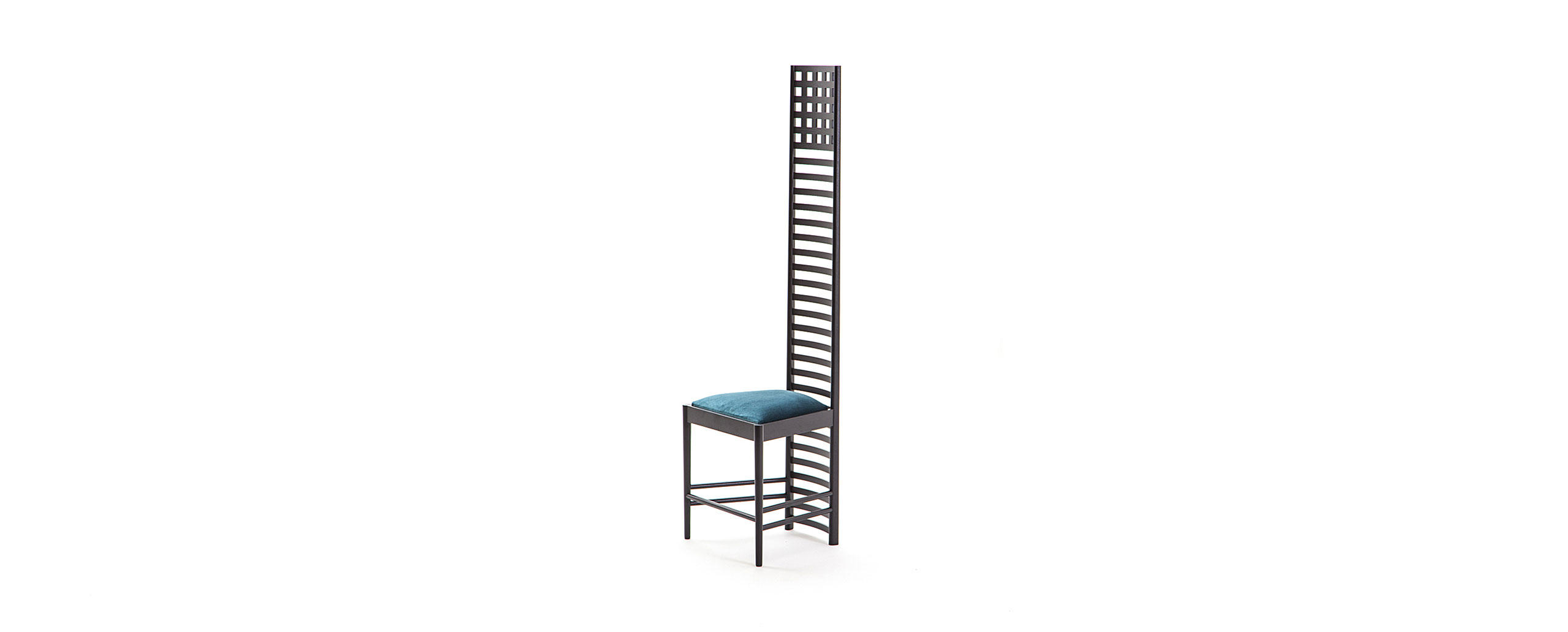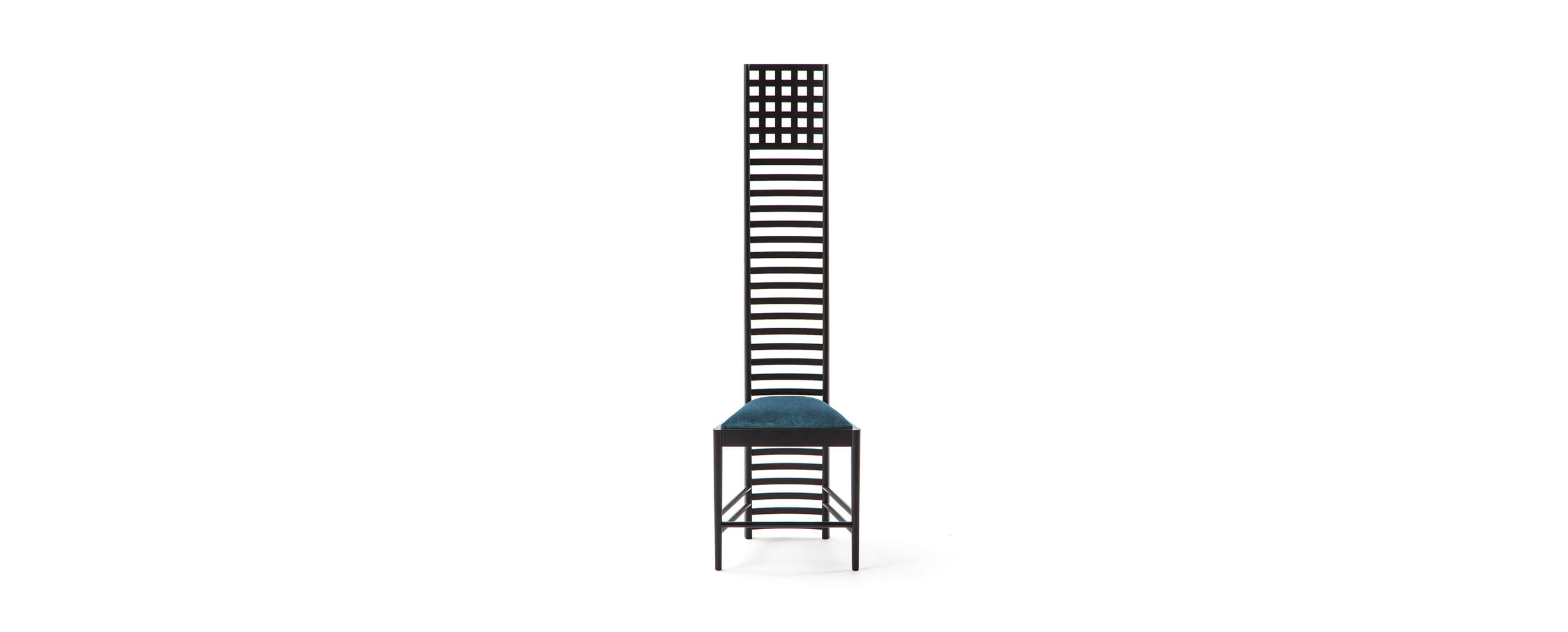 Una sedia iconica che riflette appieno lo stile del maestro e la sua inclinazione ad abbracciare le più complesse sfide produttive. Il pezzo nasce come complemento d’arredo per uno dei maggiori progetti realizzati da Mackintosh, la Hill House in Scozia, da cui prende il nome. La forma lineare e geometrica rievoca i tratti minimali e il grafismo astratto del design giapponese, integrando valori simbolici e figurativi nella personalità scenica dell’oggetto. Per molti non solo una sedia ma un autentico trattato di articolazione spaziale, dove lo schienale alto è definito dalla successione di linee verticali che culminano in un graticcio di ritti e pioli, con sezioni al limite della resistenza materica. Cassina la riedita grazie alla straordinaria maestria degli ebanisti di Meda, offrendola nella versione in frassino tinto nero con sedile in velluto.