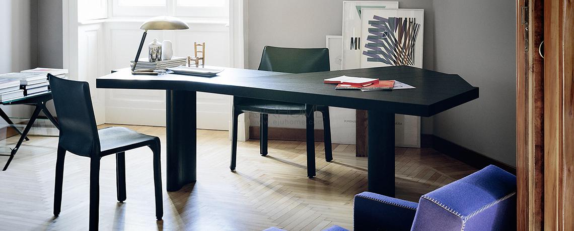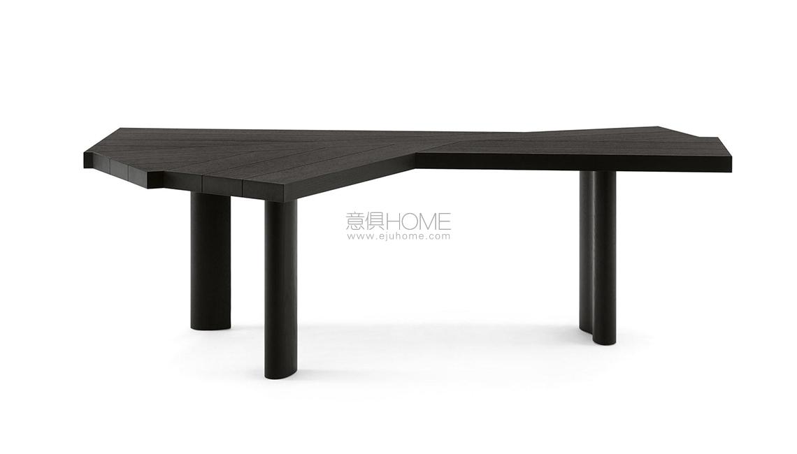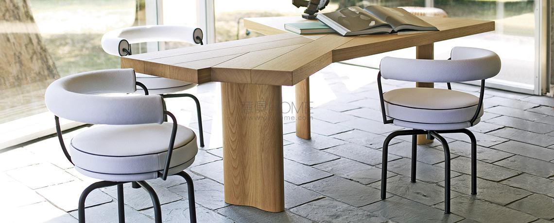 Un mobile dal carattere multifunzionale e rivoluzionario, che per forma e uso si differenzia in modo unico da tutti gli altri tavoli, sintetizzando compiutamente l’art de vivre di Charlotte Perriand. La struttura nasce dal montaggio semplice ma perfetto di quattordici assi affiancate e sapientemente assemblate tra loro nella falegnameria di Cassina. I singoli elementi si uniscono in un complesso strutturale di grande eleganza e versatilità, da interpretare in modo dinamico e innovativo in ogni scenario. Impiegato come tavolo da pranzo, Ventaglio può ospitare comodamente da 5 a 9 persone secondo l’ingombro dello spazio centrale. Se utilizzato come scrivania, la sua forma irregolare può accogliere un numero variabile di persone in base all’area necessaria per la disposizione dei computer e degli strumenti di lavoro.