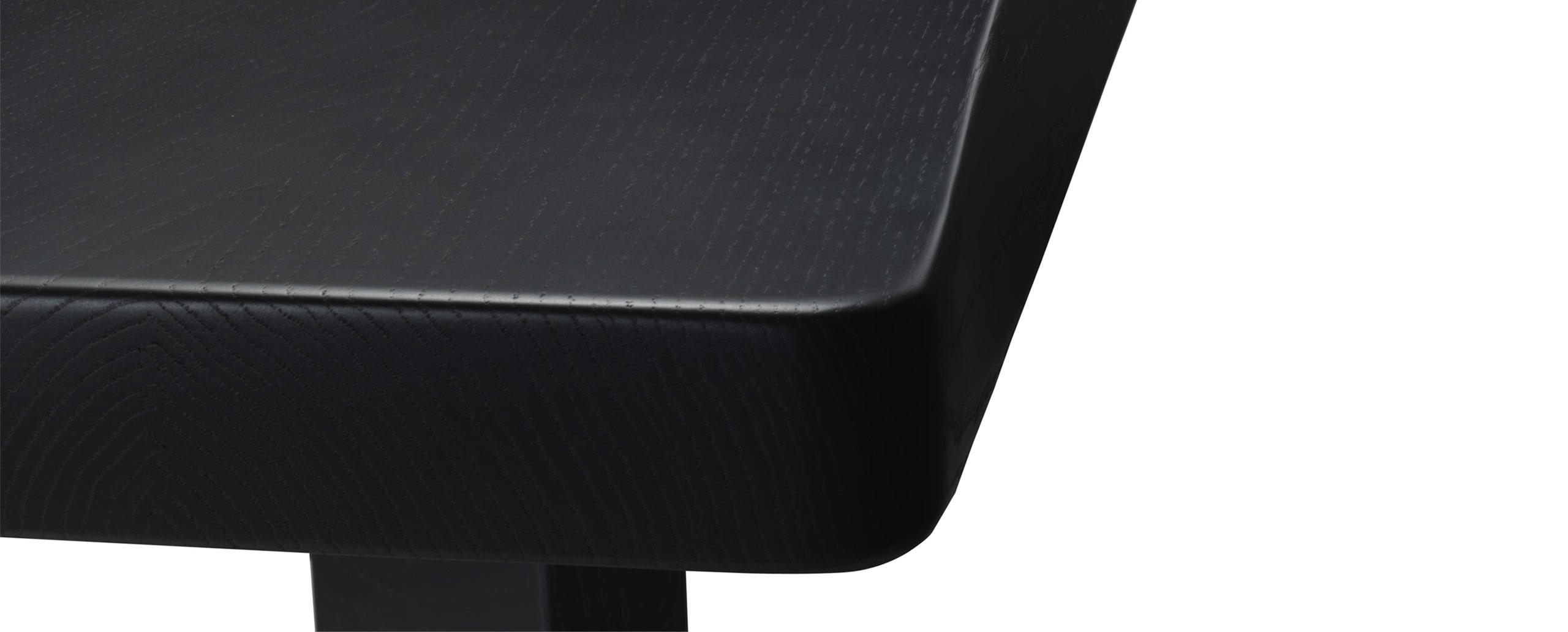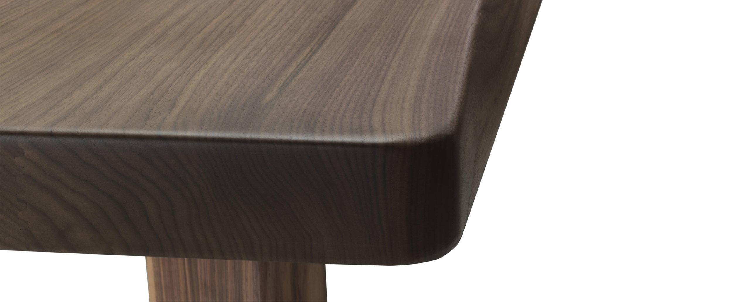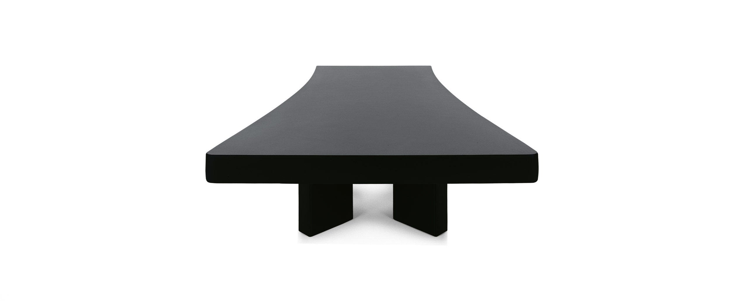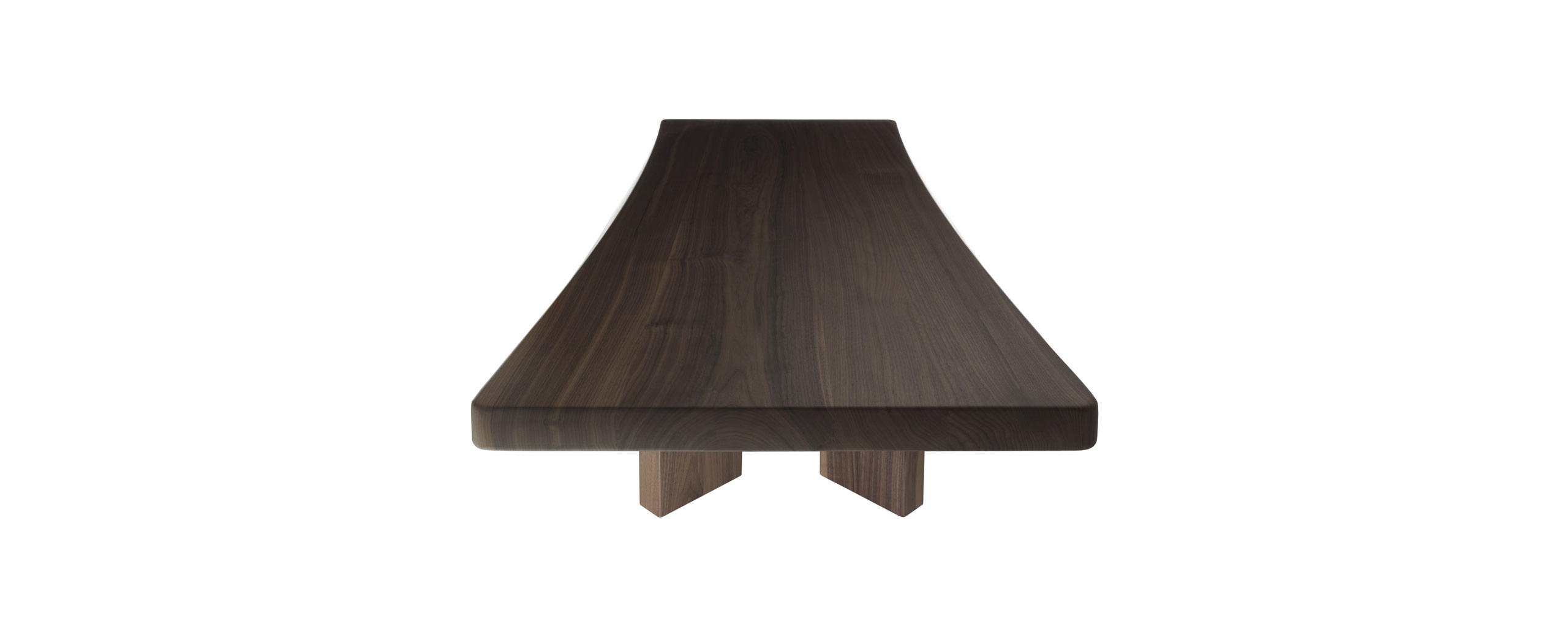 Un tavolino in massello caratterizzato dall’estrema complessità tecnologica e dalla semplicità formale del design, ideato nel 1969 per l’Ambasciata del Giappone a Parigi. La sua sintesi ha origine dalla forte emozione provata da Charlotte Perriand alla vista casuale di un masso quasi ciclopico, il cui peso era sensibilmente attenuato dalla levigatura naturale dovuta all’erosione marina. Da qui derivano lo spessore del piano e lo sviluppo concavo del bordo, che trasmettono al modello una forte connotazione estetica e una sensazione di notevole leggerezza. Il contrasto tra l’impatto figurativo e la percezione razionale del peso reale definiscono l’unicità di questo mobile, che grazie alle elaborate tecniche di realizzazione resiste alle deformazioni del tempo cui sono abitualmente soggette le strutture in legno.