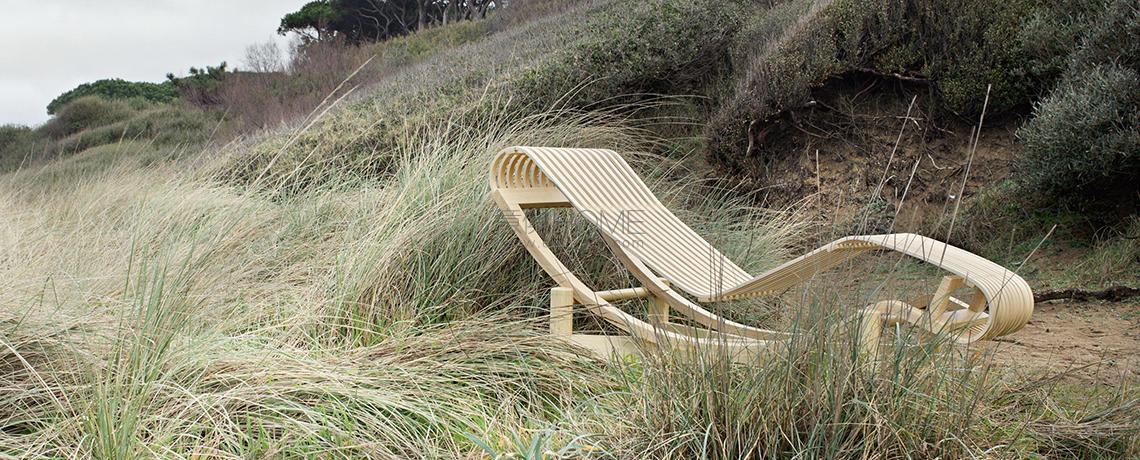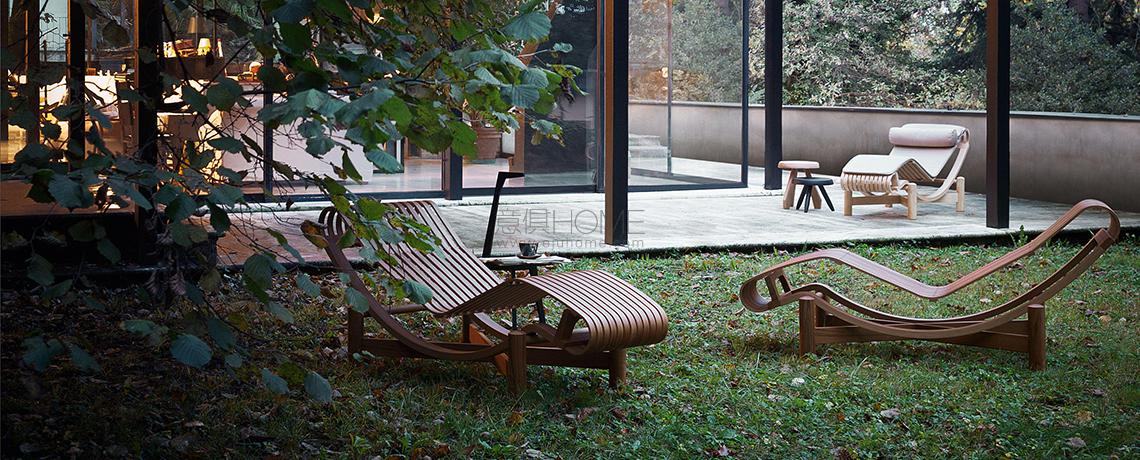 Un pezzo di storia del design attraverso cui Cassina esprime la sua eccezionale maestria nella lavorazione del legno. Un progetto inedito del 1940, realizzato da Charlotte Perriand durante il suo soggiorno a Tokyo, utilizzando il bambù per la rivisitazione della celebre chaise longue LC4. La forma organica, sinuosa e accogliente, è rieditata anche in teak oltre che in legno di bambù. Il piano sdraio è costituito da 12 listelli curvati e da una culla di listelli nello stesso materiale, uniti da preziosi elementi di giunzione in ottone satinato. L’integrazione di materassini adatti all’utilizzo outdoor prevede differenti colori per arredare con gusto la veranda, la terrazza o il dehors.