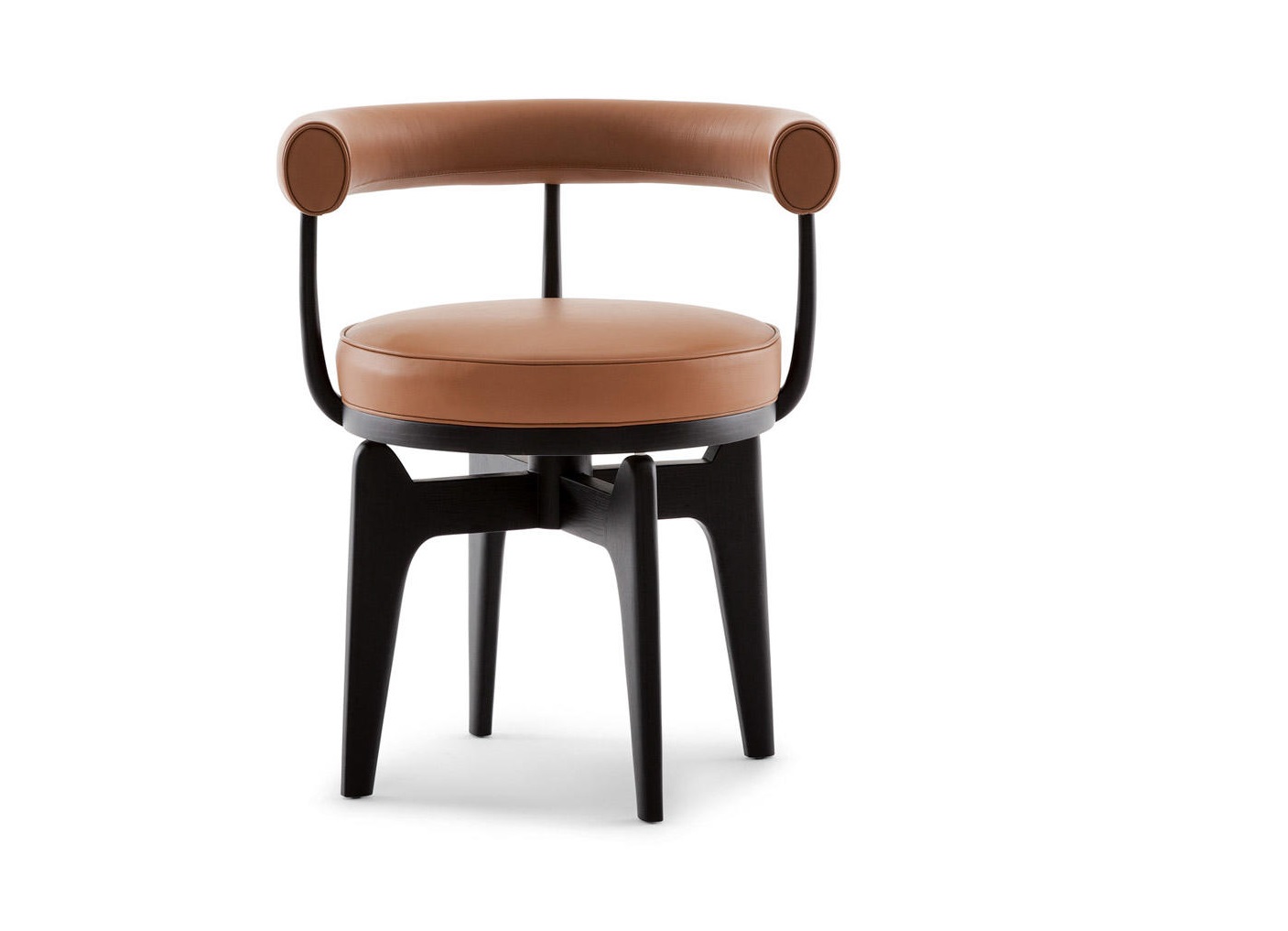 Questa poltrona girevole rappresenta un adattamento della poltroncina in tubo metallico LC7, disegnata da Charlotte Perriand nel 1927 e successivamente inclusa nel gruppo di arredi co-firmati con Le Corbusier e Pierre Jeanneret per il Salon d’Automne del 1929. Il modello fu disegnato in Vietnam nel 1943 impiegando i materiali e le tecniche artigianali reperibili durante il periodo di guerra. Dapprima strutturato con tre gambe, e in seguito con quattro, il modello riflette l’approccio flessibile e ingegnoso dell’autrice, che spesso adeguava i progetti ai materiali disponibili e ai luoghi di produzione. Cassina ha rieditato Indochine nel pieno rispetto del disegno originale interpretandolo con una pregiata costruzione in massello che evidenzia l’eccellenza dell’azienda nella lavorazione del legno.