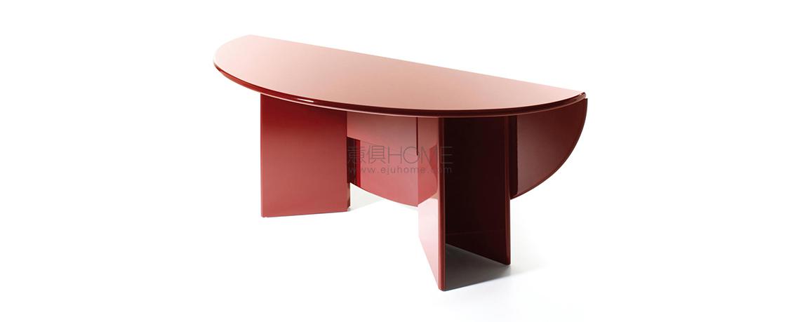 Kazuhide Takahama crea Antella con una duplice progettualità che all’occorrenza permette di trasformare la consolle in un tavolo dalla forma ellittica. La struttura verniciata in poliestere, con finitura lucida specchiante o opaca, evoca l’antichissima tradizione della laccatura già utilizzata su altri prodotti della SimonCollezione. I due semi-piani ellittici e gli elementi incernierati, bloccati tra loro mediante un magnete, consentono di piegare o estendere la struttura secondo la disponibilità di ingombro. Il pezzo può essere utilizzato a parete oppure completamente aperto per ottenere una più ampia base di appoggio.
