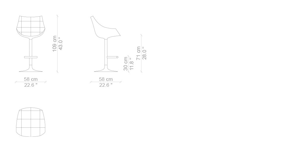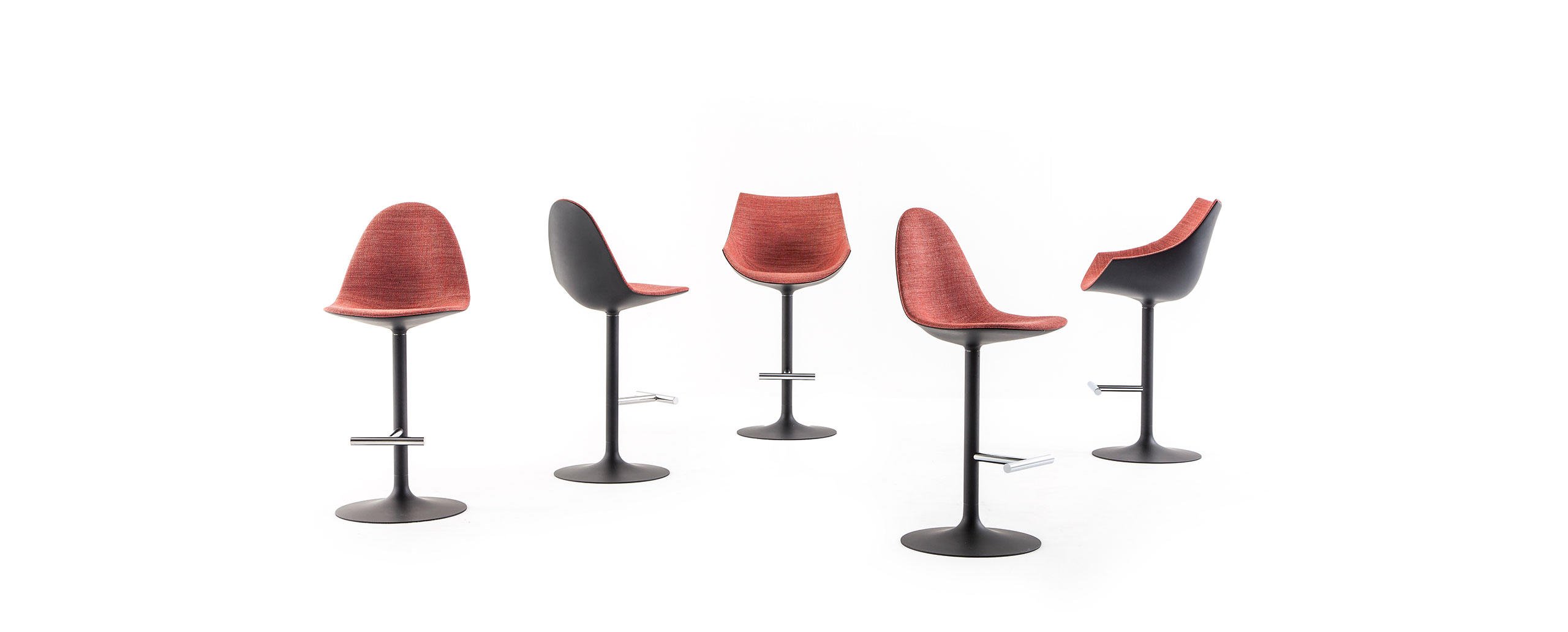 La gamma Caprice/Passion si espande per accogliere due nuovi sgabelli caratterizzati da una base a stelo di alluminio e da sedute che riproducono le rispettive fisionomie della sedia Caprice e della poltroncina Passion.  La seduta degli sgabelli ruota a 360° ed è sempre posizionata in direzione del poggiapiedi cromato grazie al meccanismo automatico della base. La proposta, sviluppata su due altezze, arricchisce l’estetica iconica e intramontabile di Cassina puntando a rafforzare il suo posizionamento nel segmento business e nell’arredo degli ambienti che associano vita e lavoro.