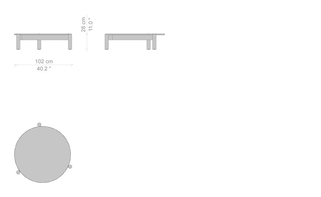 Il primo esemplare storico è stato realizzato nel 1937 per l’atelier di Charlotte Perriand a Montparnasse. La struttura del basamento era costituita da tre gambe a sezione circolare unite da traversi sui quali veniva appoggiato il piano, che poteva essere intercambiabile. Un progetto pensato per essere declinato in modi diversi; il modello infatti si ritroverà in molti altri e successivi progetti di Perriand, da quelli giapponesi degli anni 40, con piani o vassoi intrecciati realizzati con materiali locali, a quello dello spazio soggiorno degli appartamenti delle Unité d’Habitation a Marsiglia. Il Table à Plateau Interchangeable, oggi presente nella Collezione Cassina I Maestri, è stato sviluppato anche per uso esterno. La versione outdoor, in due misure come il modello per interni, ha una struttura in massello di teak e il piano in marmo di Carrara con finitura olio-idro.
