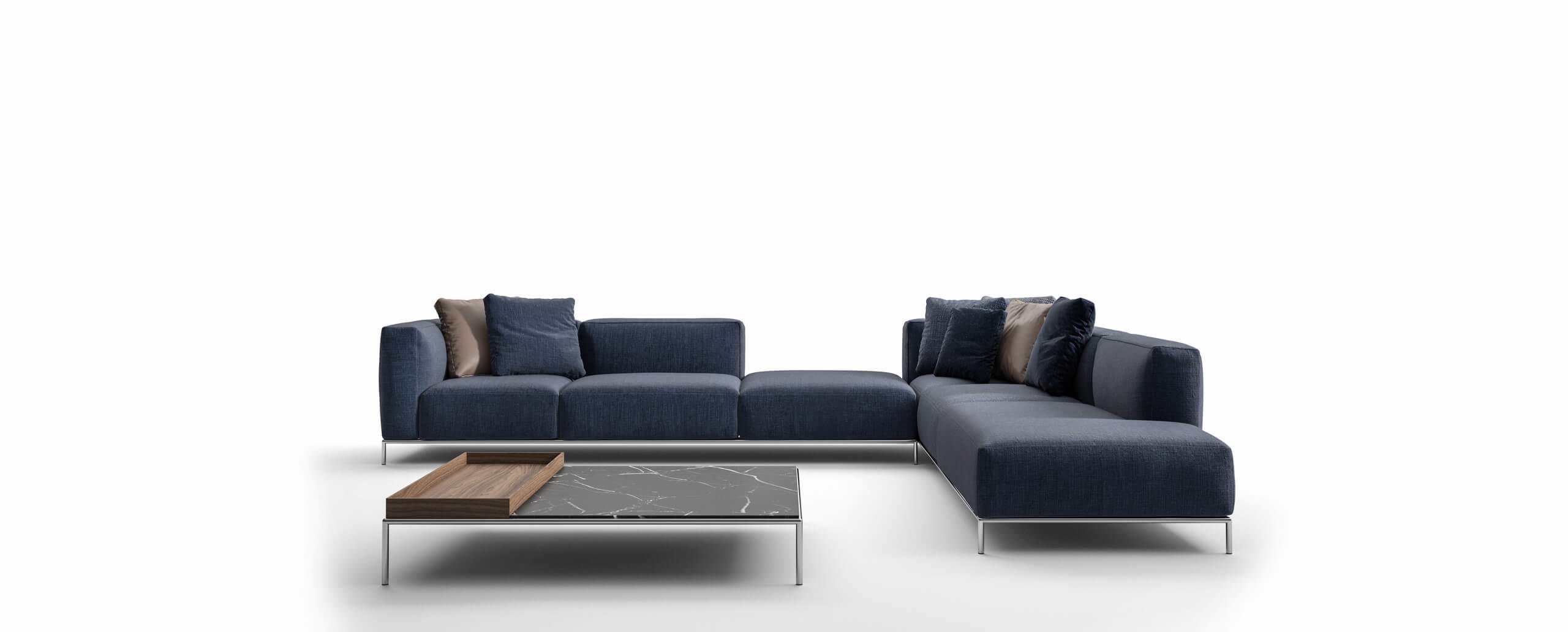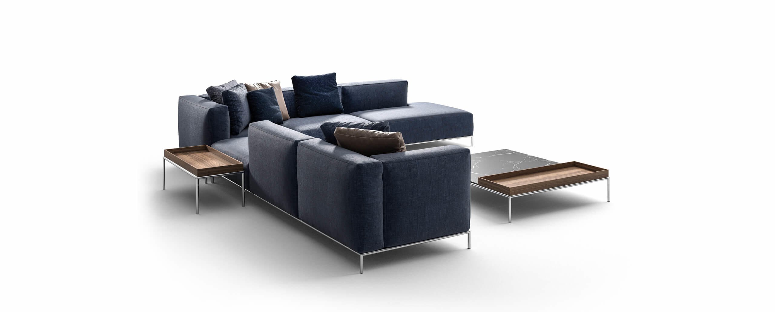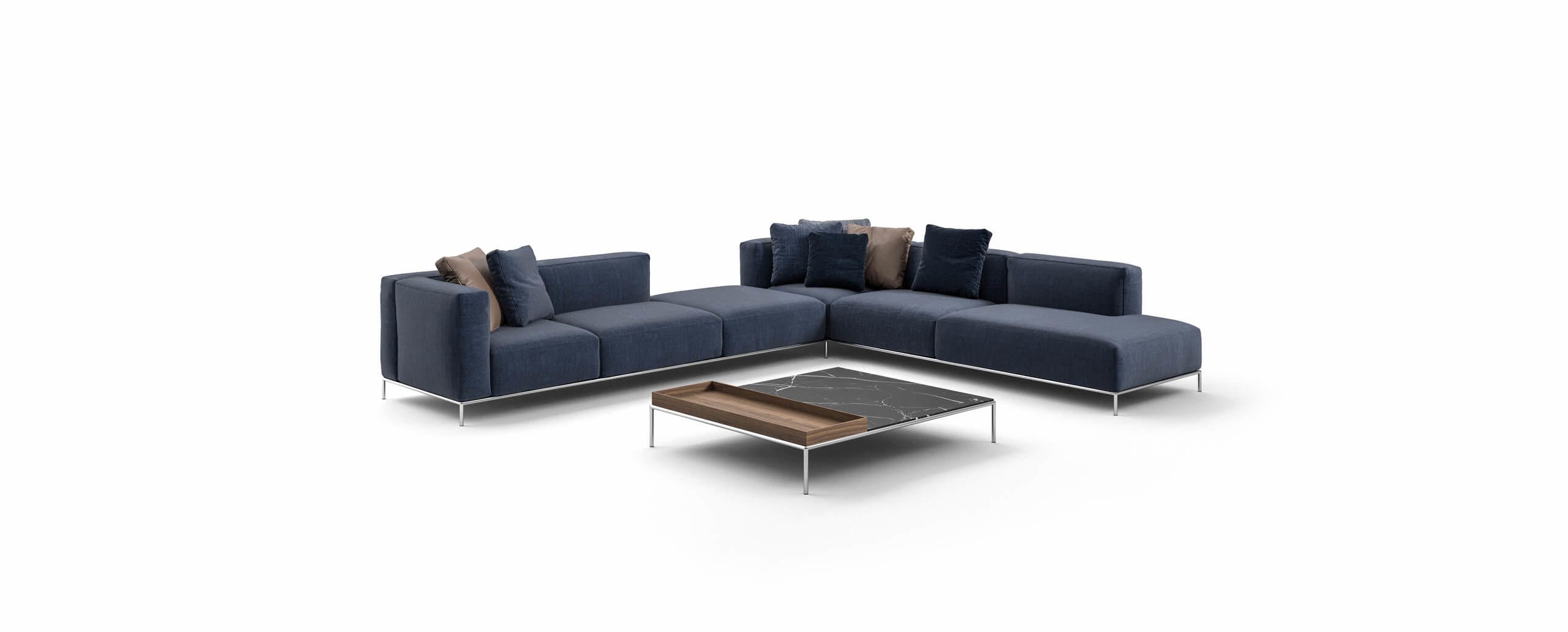 Modulare e versatile, grazie alla varietà di elementi e configurazioni disponibili, il siste-ma Mex-Hi è costituito da cinque pianali di diverse misure su cui fissare le cuscinature indipendenti – braccioli, schienali e sedili – per consentire la realizzazione di composi-zioni ad angolo, in linea o a isola. Grazie allo studio eseguito da Cassina LAB, una col-laborazione tra il Centro di Ricerche e Sviluppo di Cassina e il Poli.design del Politecni-co di Milano, il divano è realizzato con materiali innovativi al fine di renderlo comodo e più sensibile all’ambiente. Una fibra riciclata al 100%, ottenuta da PET in gran parte re-cuperato dagli oceani, è introdotta nell’imbottitura dei cuscini. La struttura è in tubolare di acciaio dotata di cinghiature elastiche; il rivestimento è sfoderabile. Completano la colle-zione un tavolino freestanding e un pouf/tavolino.