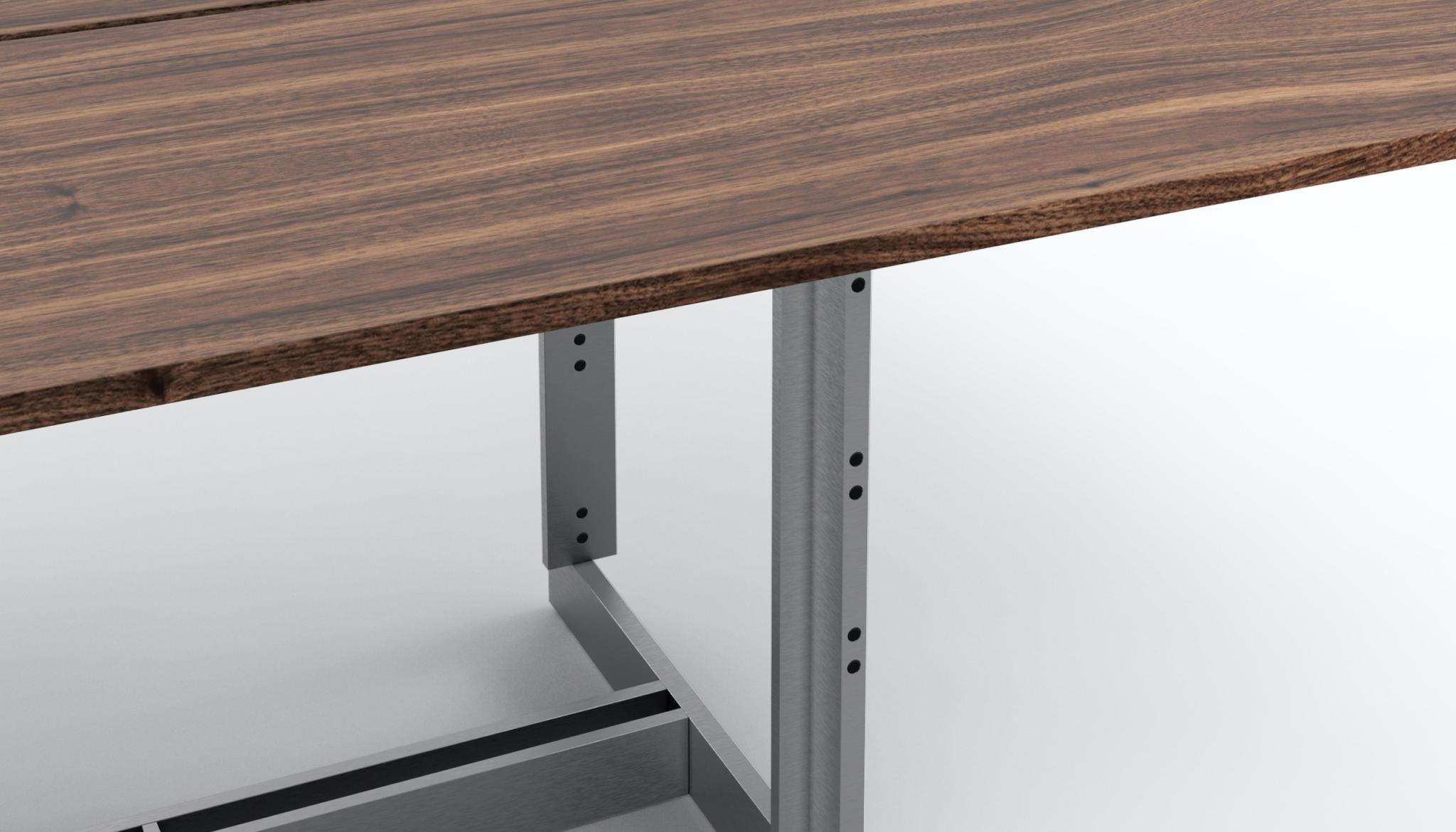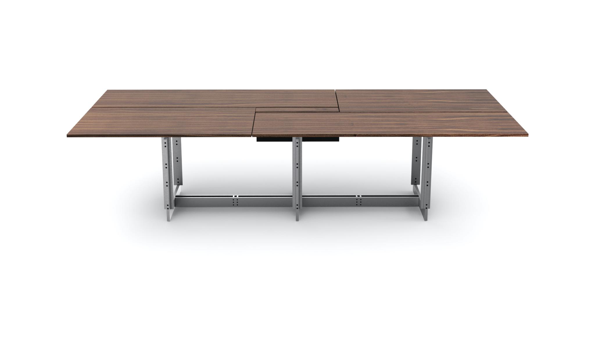 Carlo Scarpa designed Sarpi Office in 1974, successor to the popular sculptural Doge table. While alluding to the same features as its predecessor, the Sarpi Office base is upside-down and has a smaller footprint, allowing the table to also be used in smaller office spaces. The table comes with integrated power access and cable slot located at the center of the top, with the option of various electrical configurations.