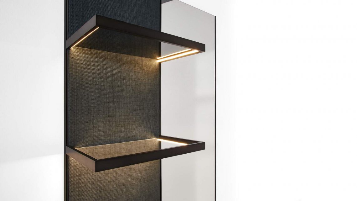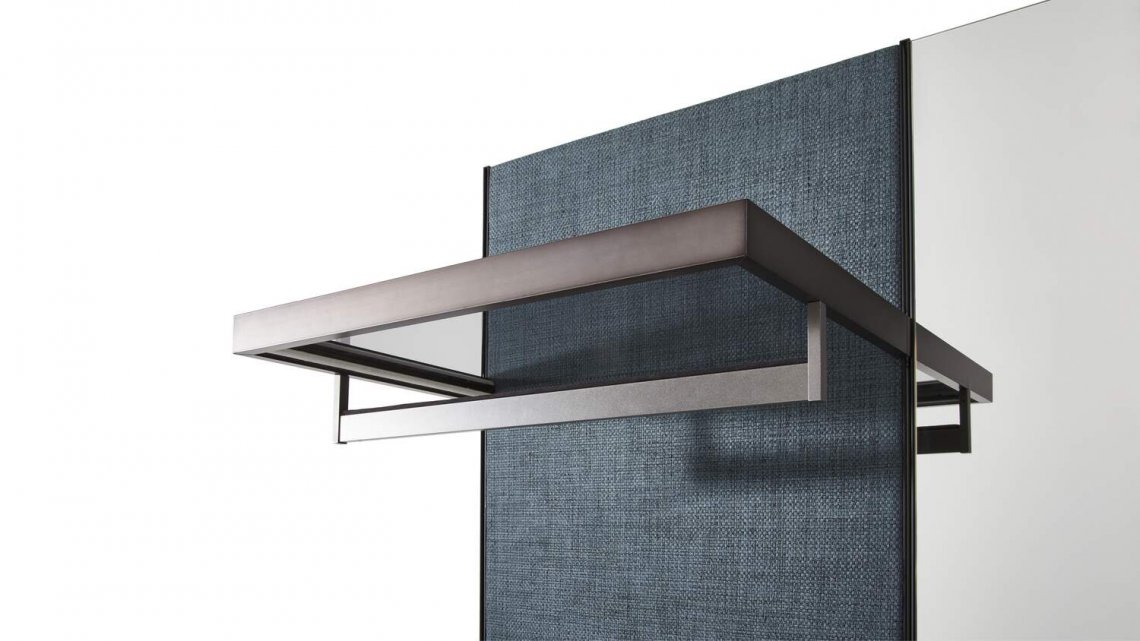 創(chuàng)新特點在于減少了約30mm的面板和支架厚度,從而可以偽裝結(jié)構(gòu)并使墻壁像畫布一樣震撼。框架和支撐采用電氣化擠壓成型鋁齒軌,面板有不同的處理,如木質(zhì)漆面或鑲貼木、鏡面玻璃或背漆玻璃、布藝,以及為臨時裝飾或墻紙準備的版本。此外,還配有一系列的附件,如帶有珍貴玻璃的不同深度的面板,可以使用LED燈照明,擱板上有一個配備了微纖密封圈的掛衣軌道,可以牢固而安靜地放置衣架,并且還有一面鏡子。