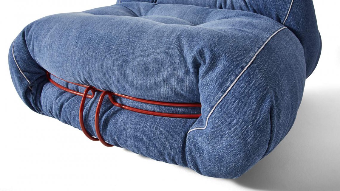 得益于 Cassina LAB 所做的工作,牛仔版的 Soriana 保持了同樣的環保方法,并采用再循環材料:扶手椅的結構由一系列裝有 BioFoam? 微粒的袋子制成,而填料則采用來自 Plastic Bank? 的 100% 再生 PET 吹制纖維。