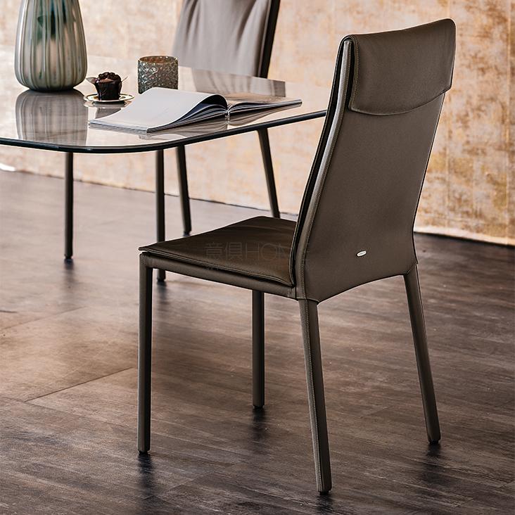 Chair with or without arms with steel frame completely covered in fabric, synthetic nubuck, micro nubuck, synthetic leather or soft leather as per sample card. The cover is not removable.
