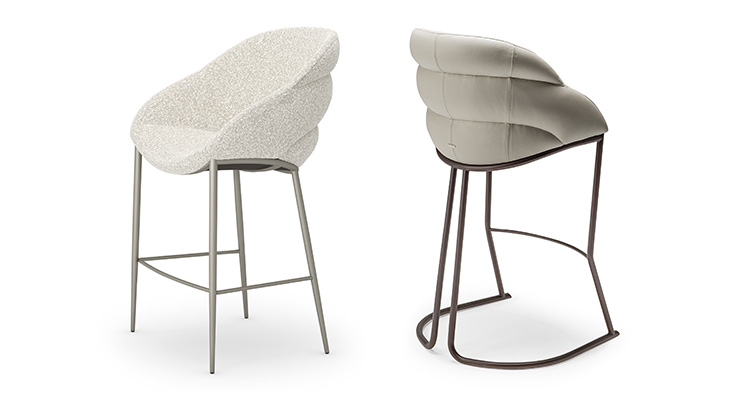 A design with sinuous lines that envelop the body, support posture and help make modern dining rooms cosy environments you can feel at home in. The Camilla family of armchairs and stools is the perfect example of a chair with upholstered arms that complements a room with the subtlety and sensuality you wish for in a home environment.