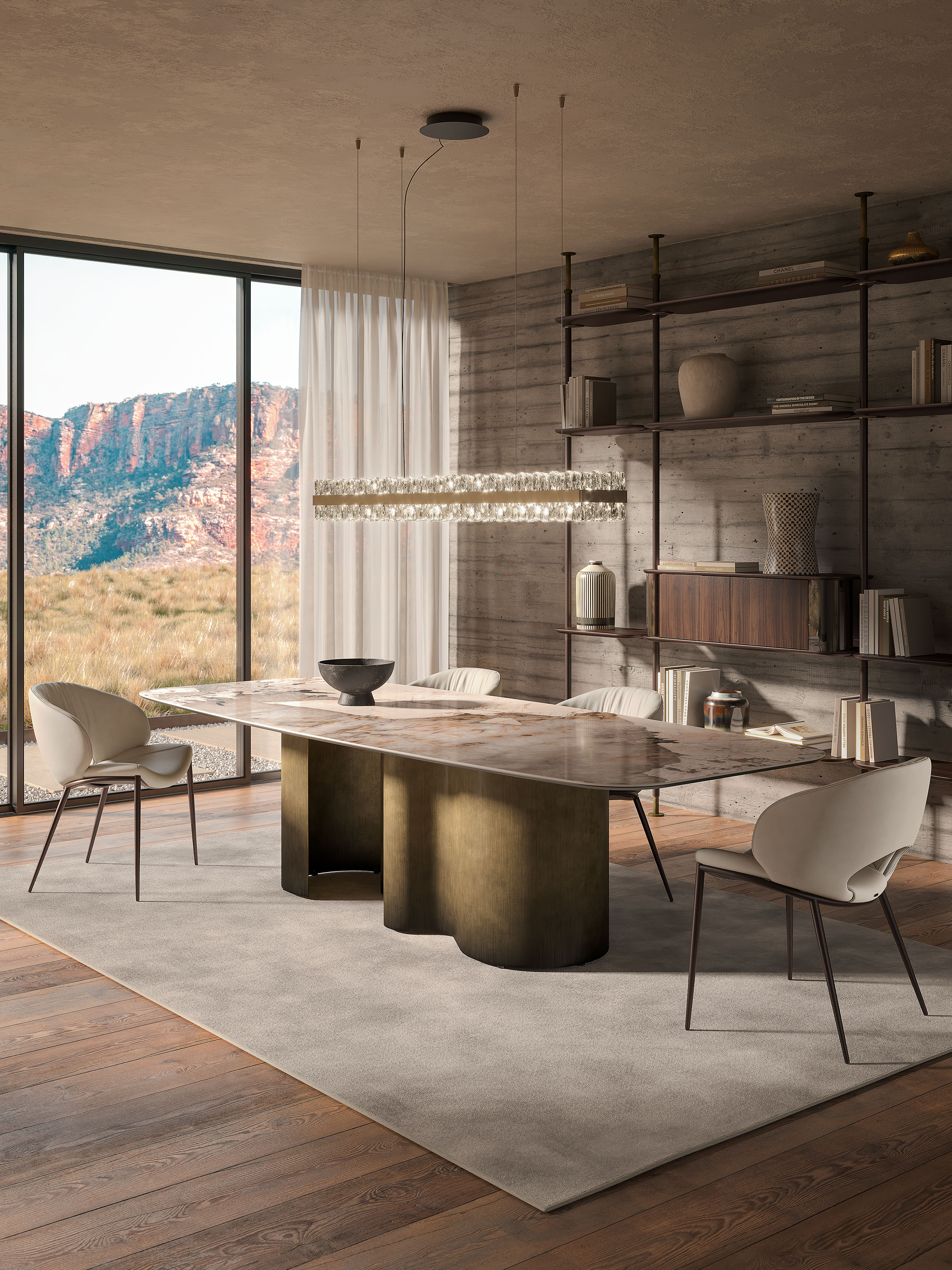 The Papel family of tables was conceived as a table-sculpture that puts on a glamorous show, bringing the ultimate modern dining room to life.