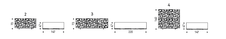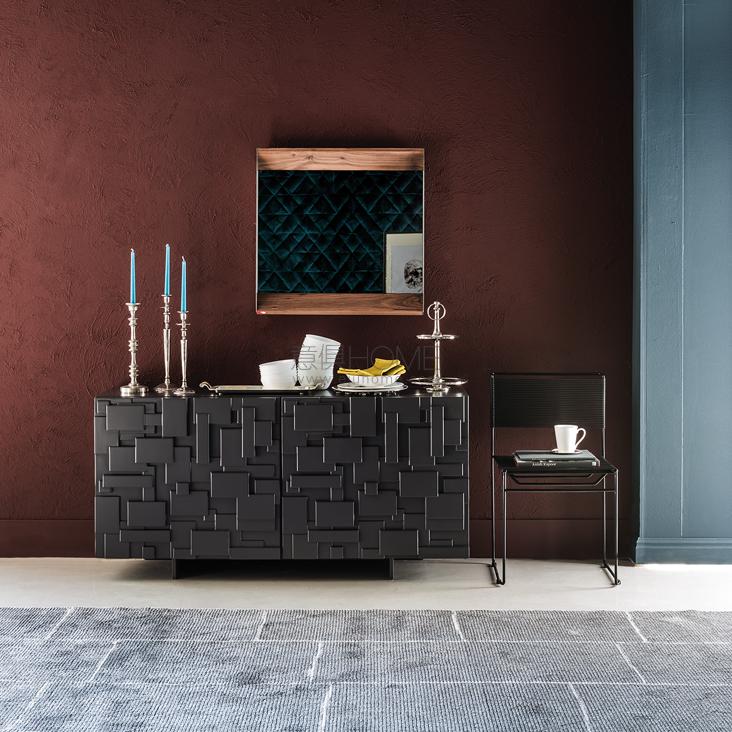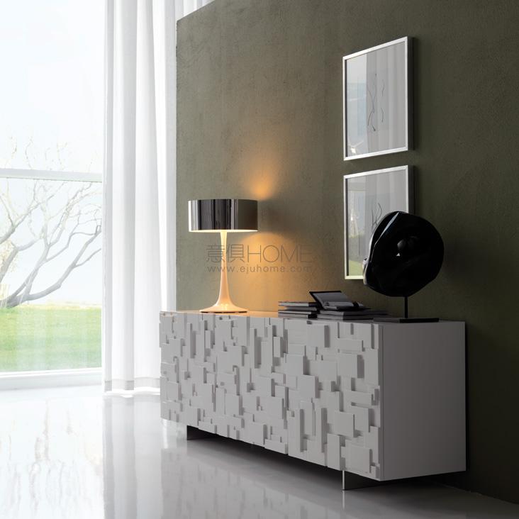 Sideboard in matt white (OP7) or matt graphite (OP69) lacquered wood with rigid polyurethane doors. Polished stainless steel feet, matt white (OP71) or graphite (OP69) varnished. Internal shelves in clear glass. Optional: internal drawer in each door. In the 4 version, optional internal drawer only in the two lower doors.