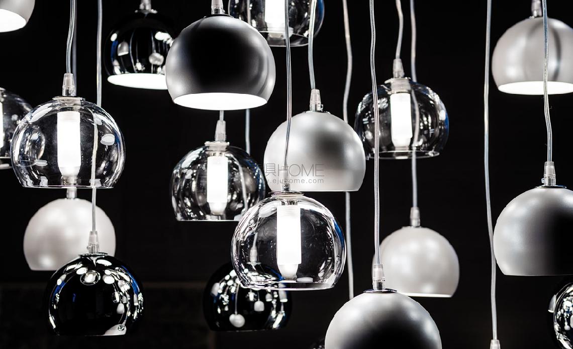 Ceiling lamp with chromed (08) steel, borosilicate glass or pearl white painted steel lampshade. Ceiling plate in polished stainless steel. S1: single plate. S6: rectangular ceiling plate for 6 lampshades. S10R: round ceiling plate for 10 lampshades. S10oval: oval ceiling plate for 10 lampshades. Bulb included.
