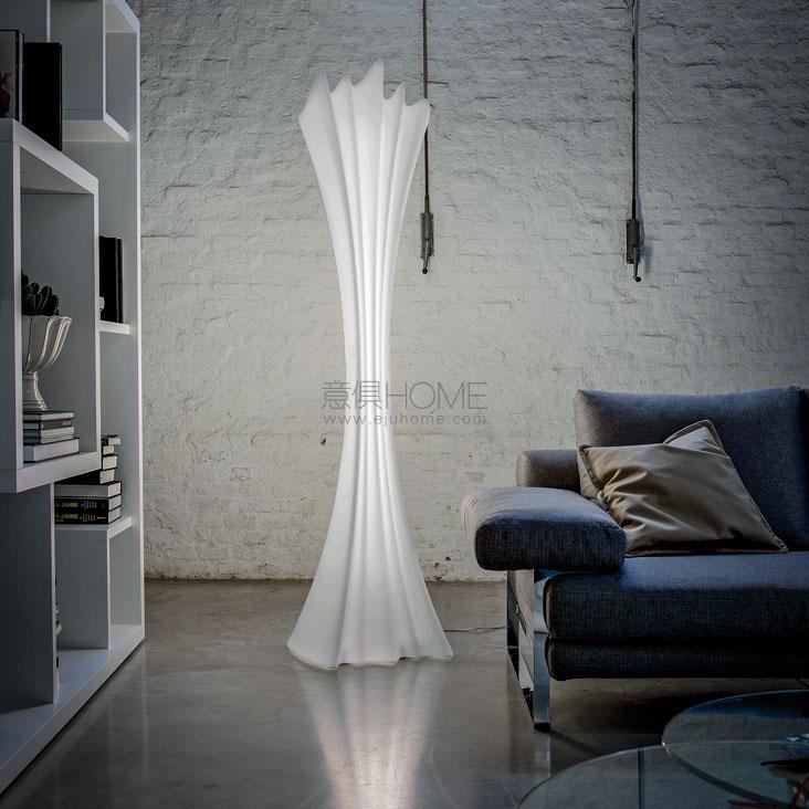 Floor lamp-coathanger in white polyethylene. Bulb included. In 110V version bulb not included.